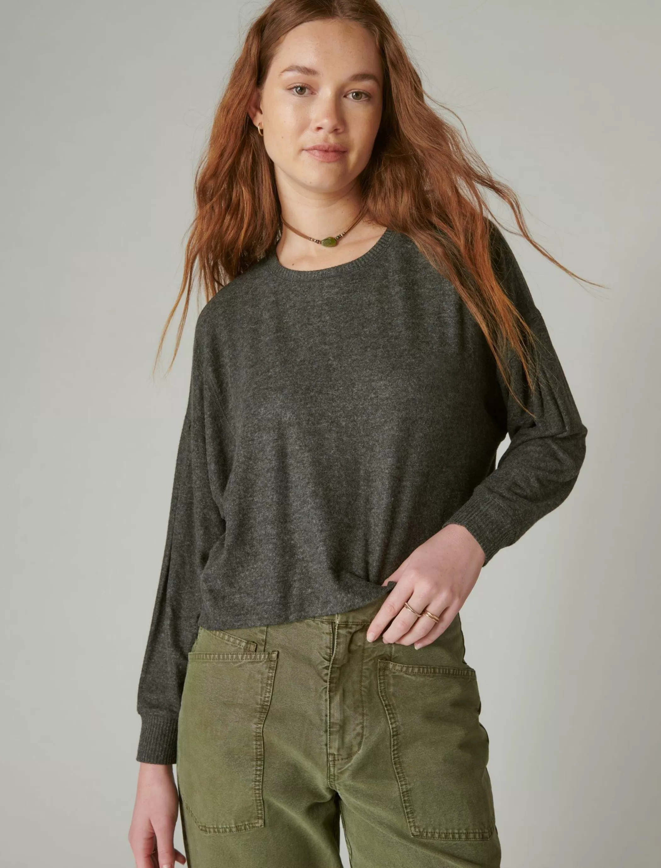 Exposed seams, a perfectly-cropped fit and our ultra soft cloud jersey material make this long sleeve top a must-have style for your cool-weather wardrobe.