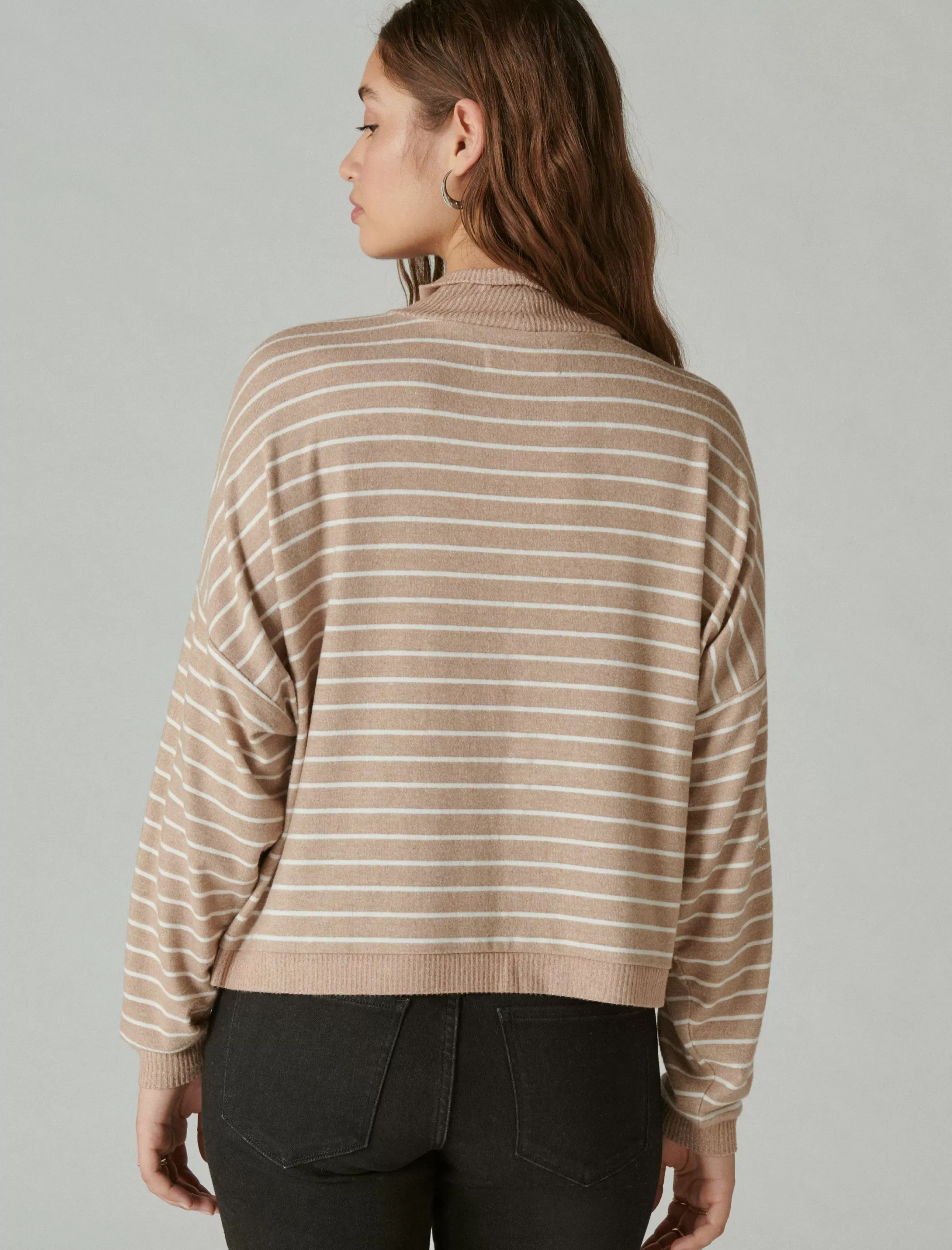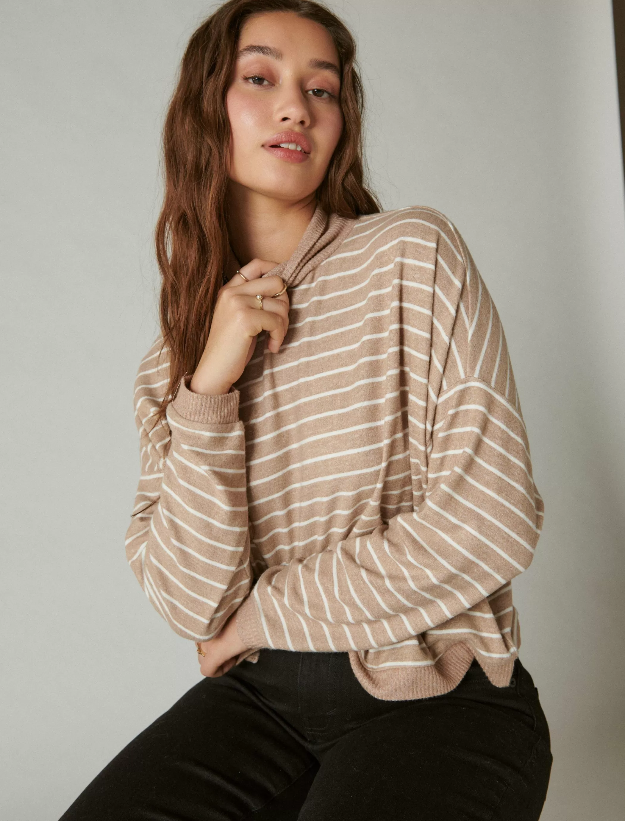 Stay comfy and cute with this mock neck top featuring a wear-with-everything striped design and ribbed details in our ultra soft cloud jersey material.