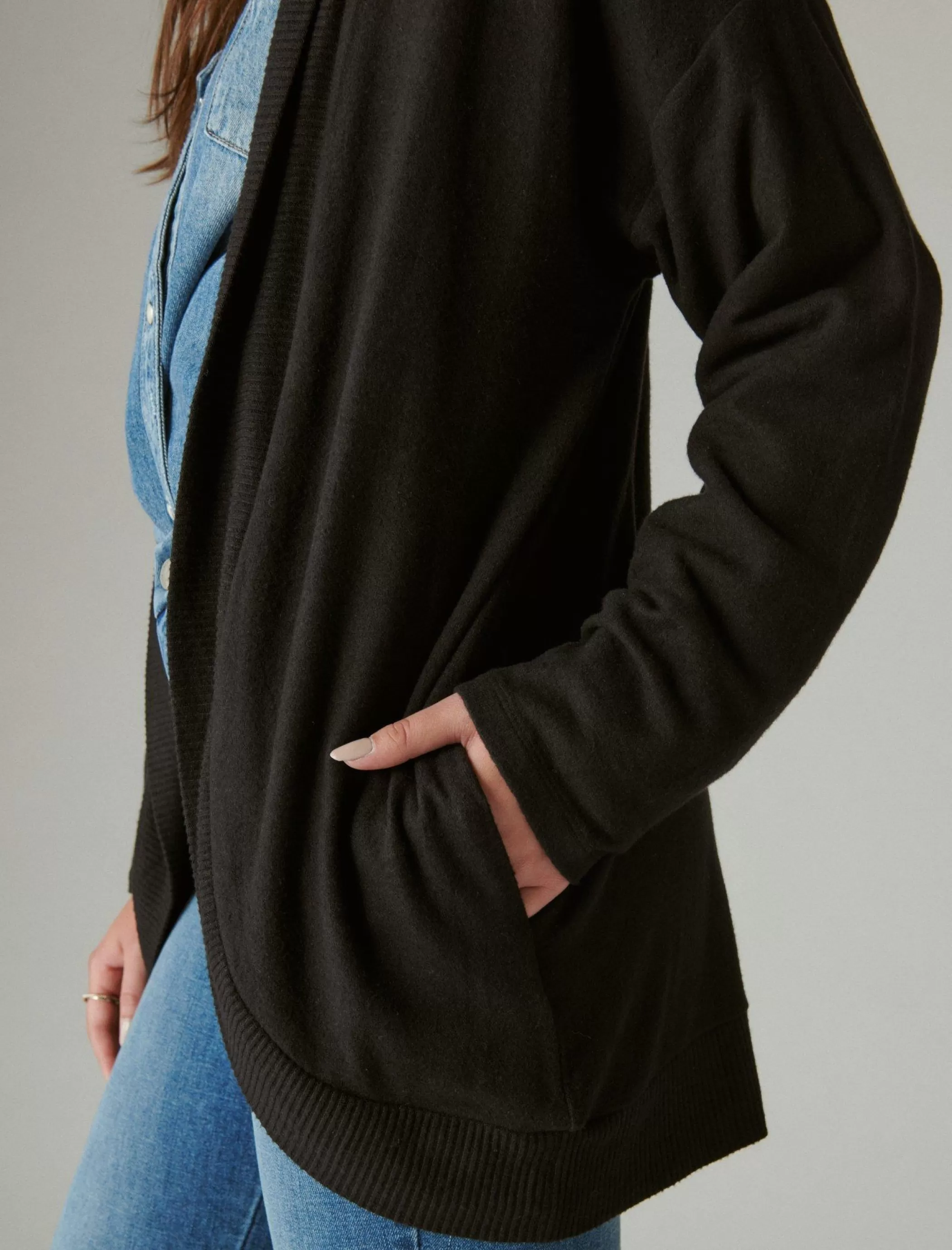 No wardrobe is complete with a classic cardi. Spun from our ultra soft cloud jersey material, this layering staple has a comfy, ribbed shawl collar and side pockets.