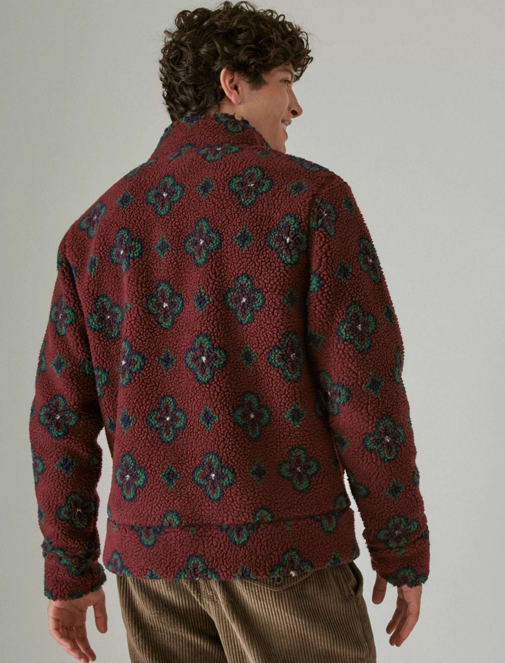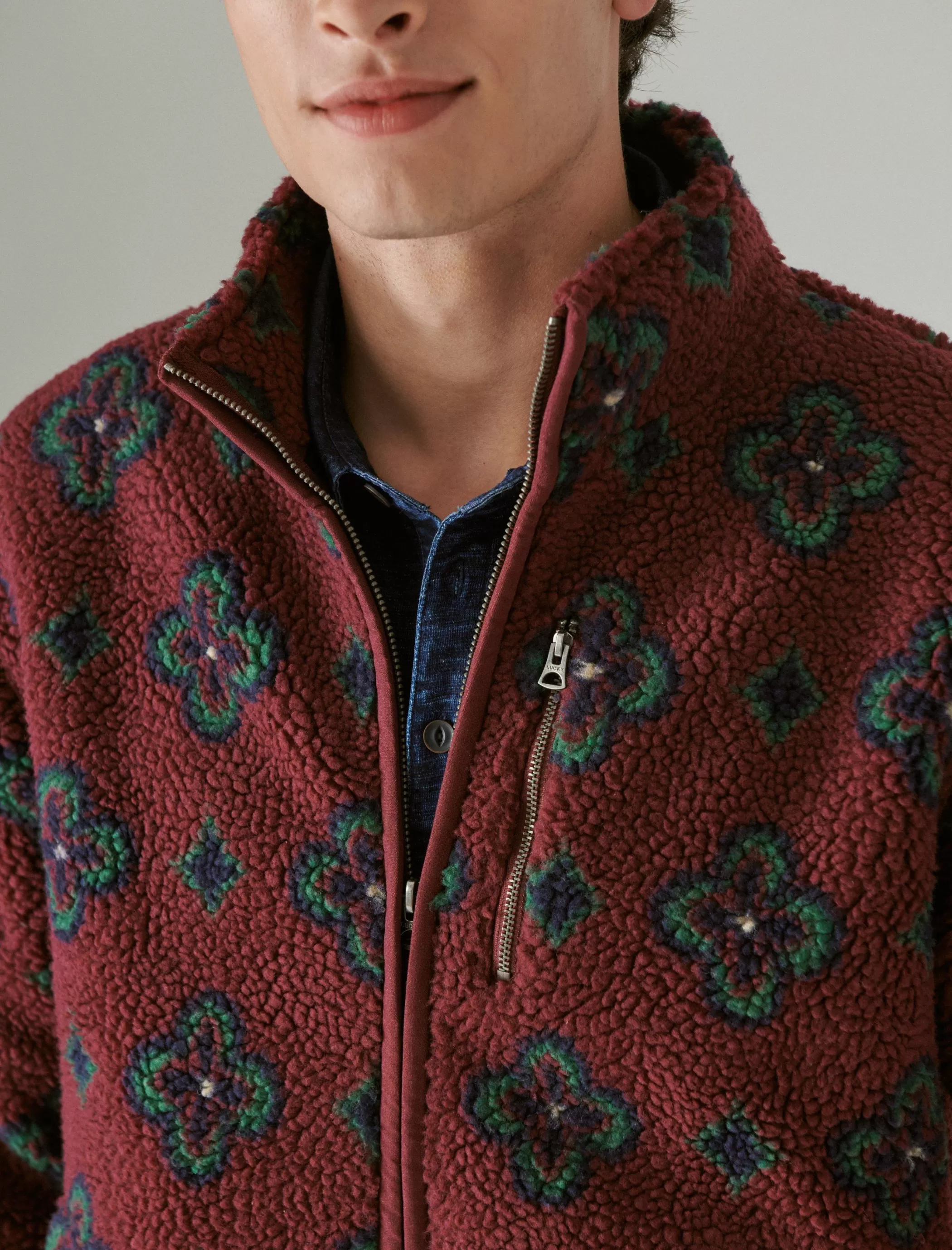 Make an easy wardrobe decision and reach for this hi-pile zip-up style featuring a classic mock neck, all-over print and multiple pockets.