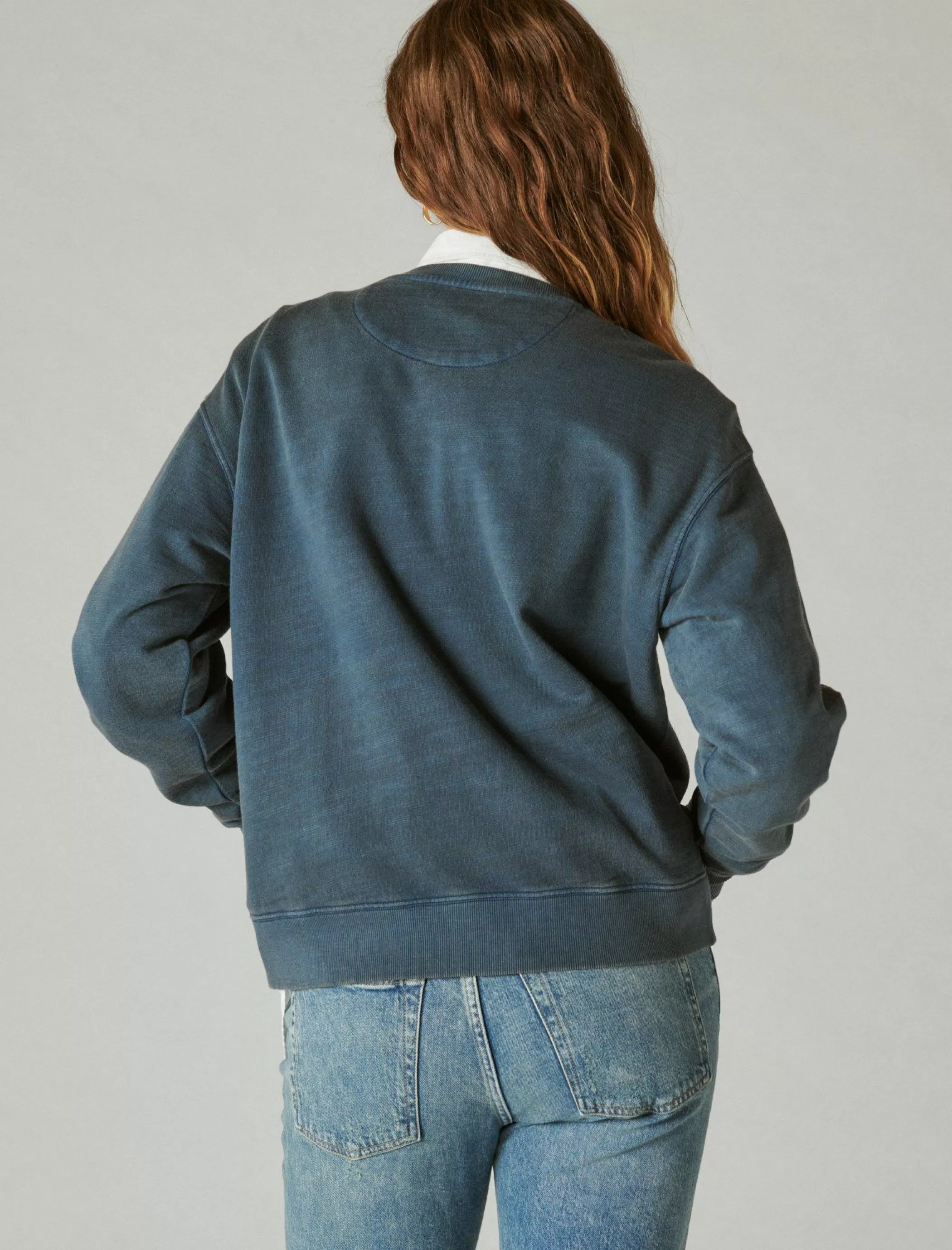 Make good fortune—and look good doing it—wearing this long sleeve pullover stamped with our arch-style logo at the front.