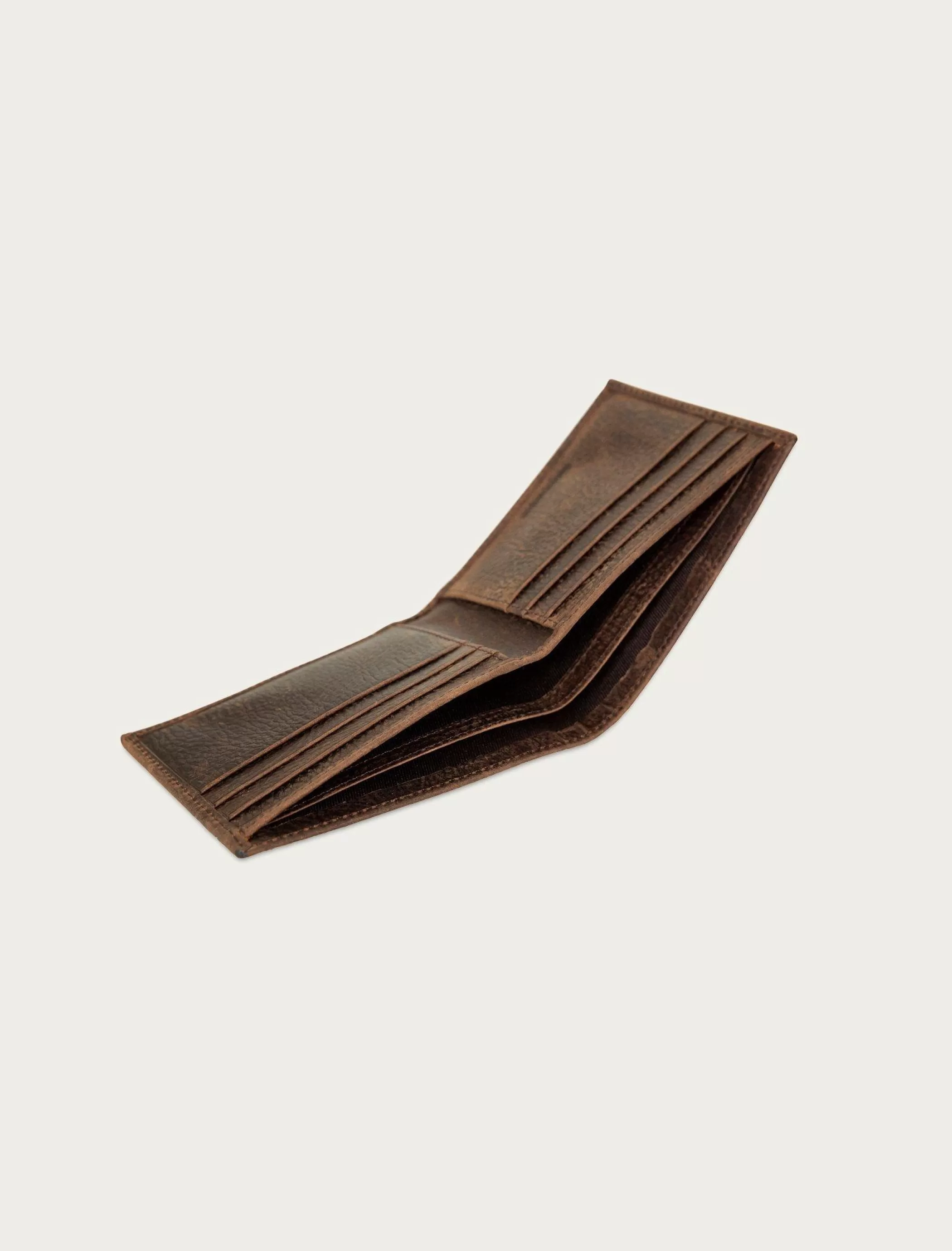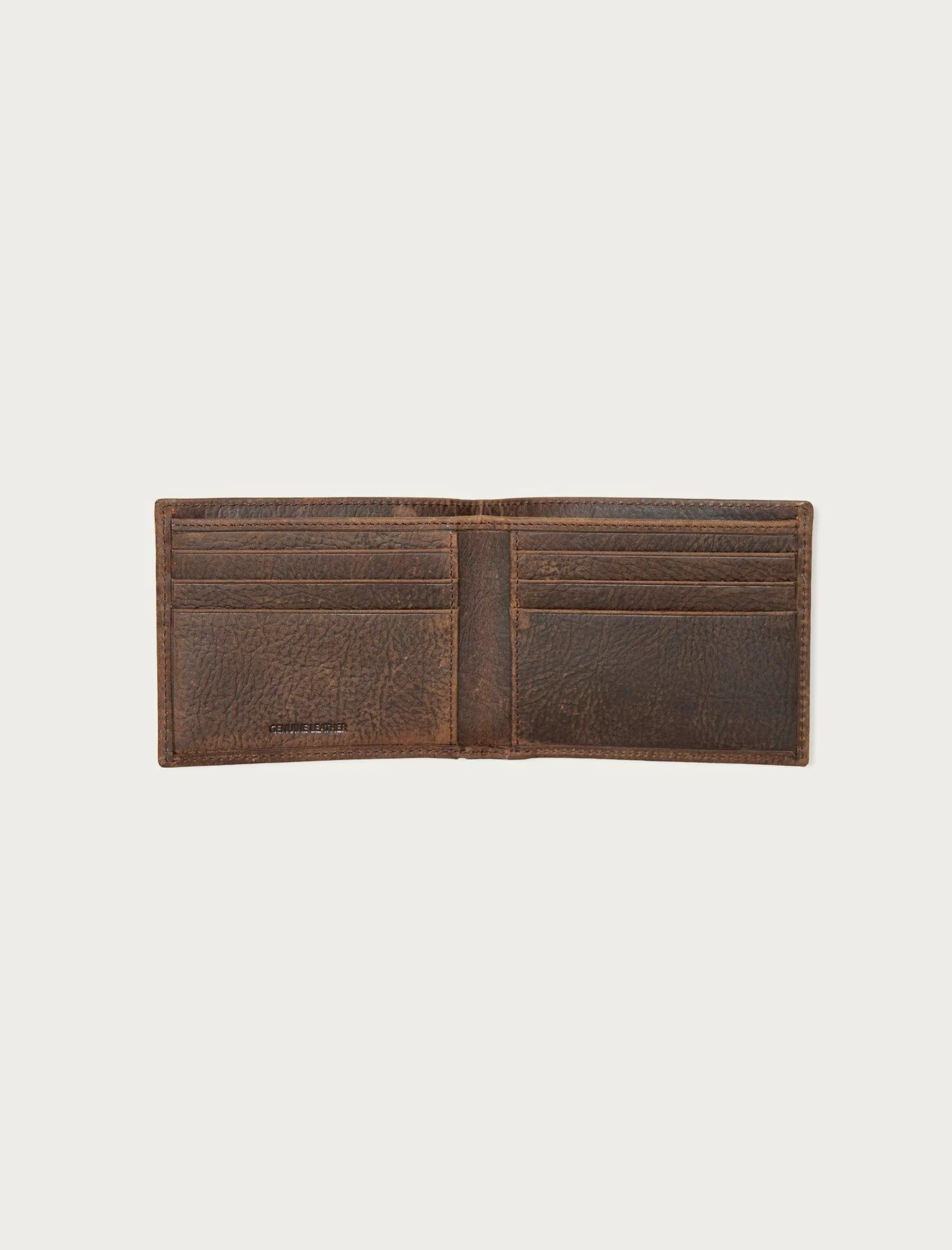 Featuring a sleek, slim silhouette with double stitching details, this leather bifold wallet has several card slots to keep ID, cash and credit cards safe.