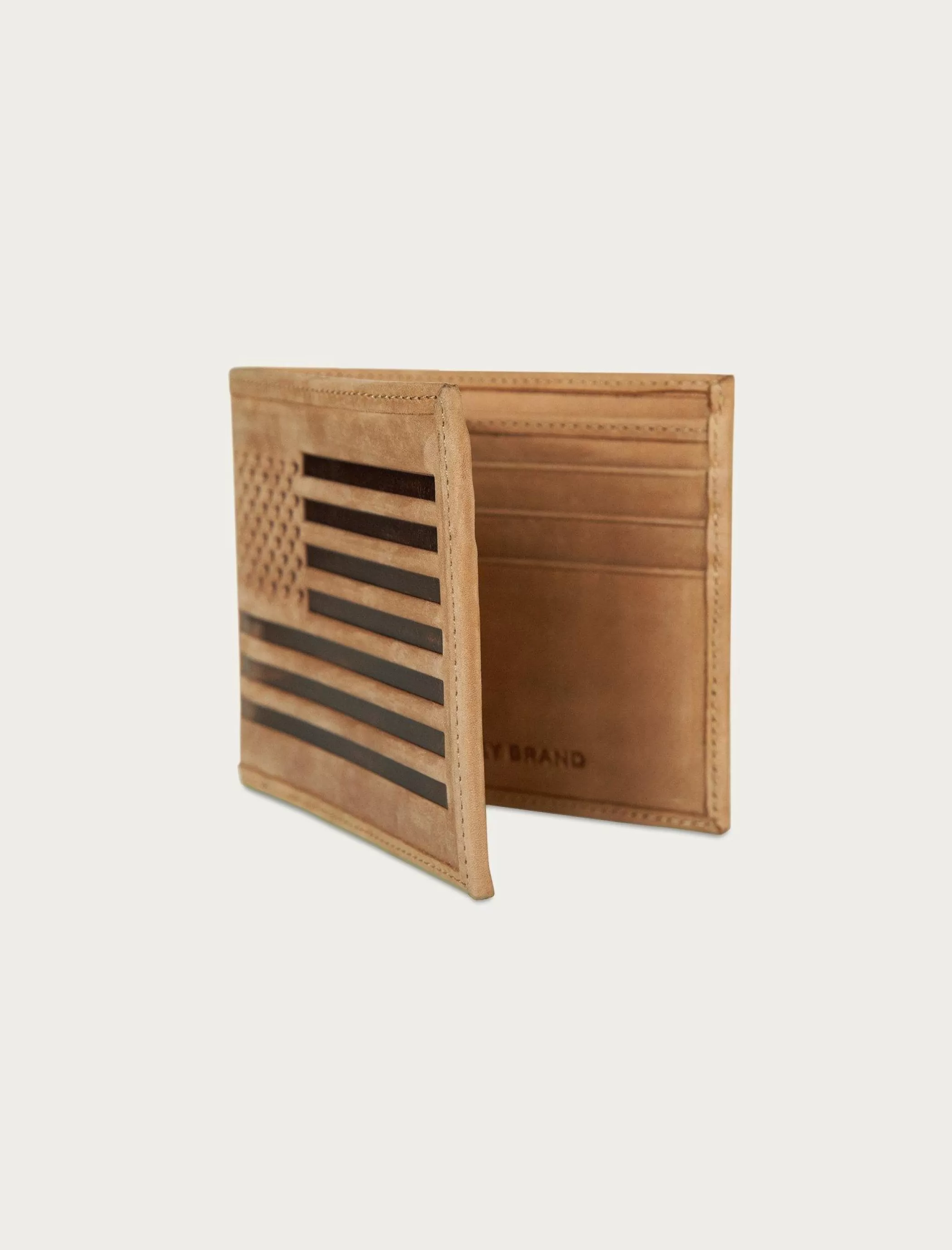 Featuring a sleek, slim silhouette with an embossed flag design, this leather wallet features several card slots to keep ID, cash and credit cards safe.