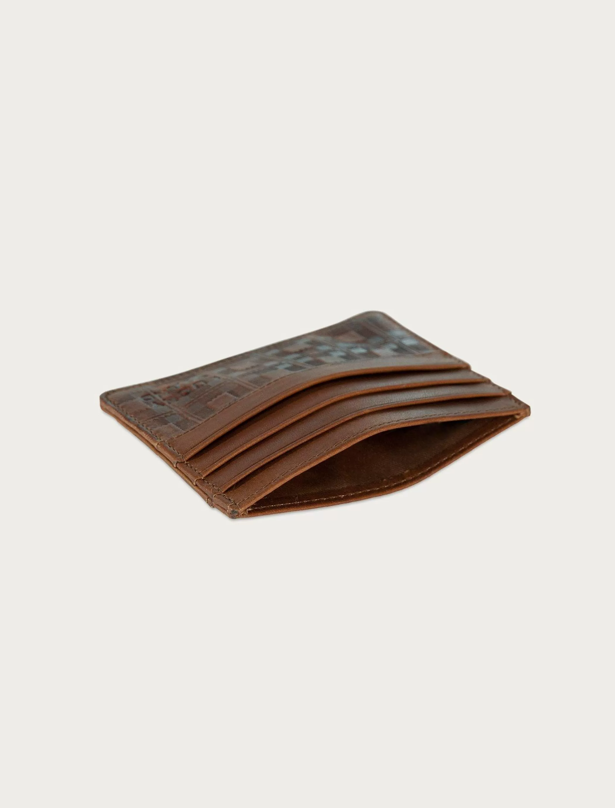 Made with multiple compartments and showcasing a plaid embossed design, this leather trifold wallet features several car…