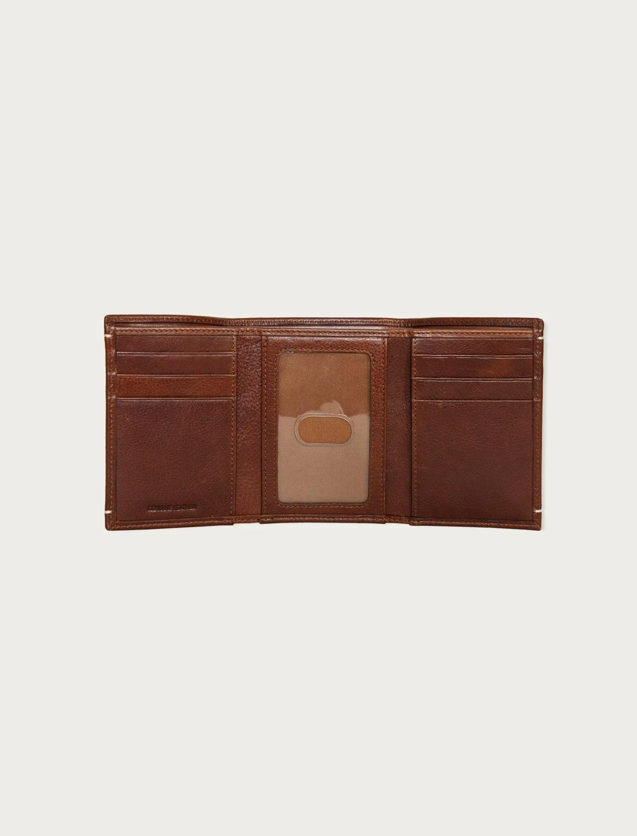 Made with multiple compartments and showcasing a smooth silhouette, this leather trifold wallet features several card slots to keep ID, cash and credit cards safe.