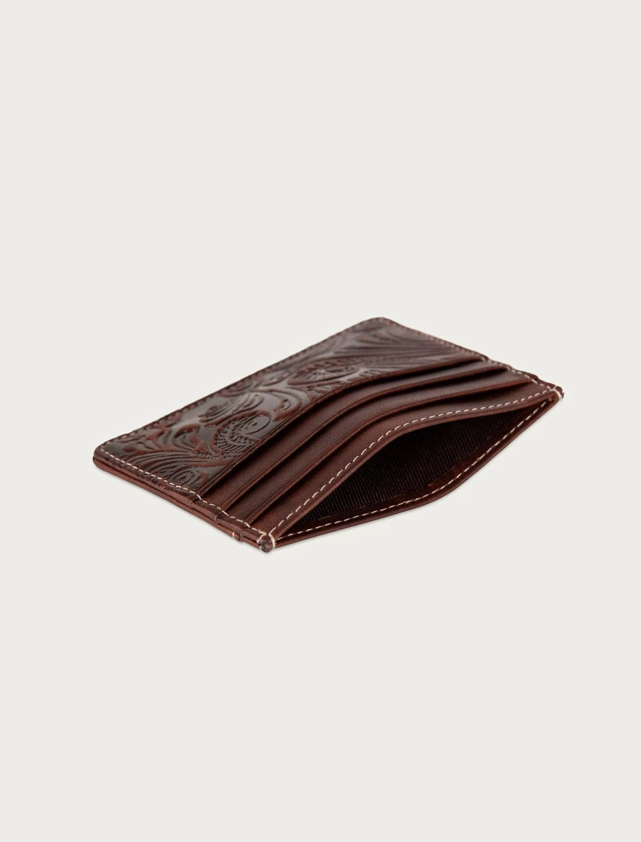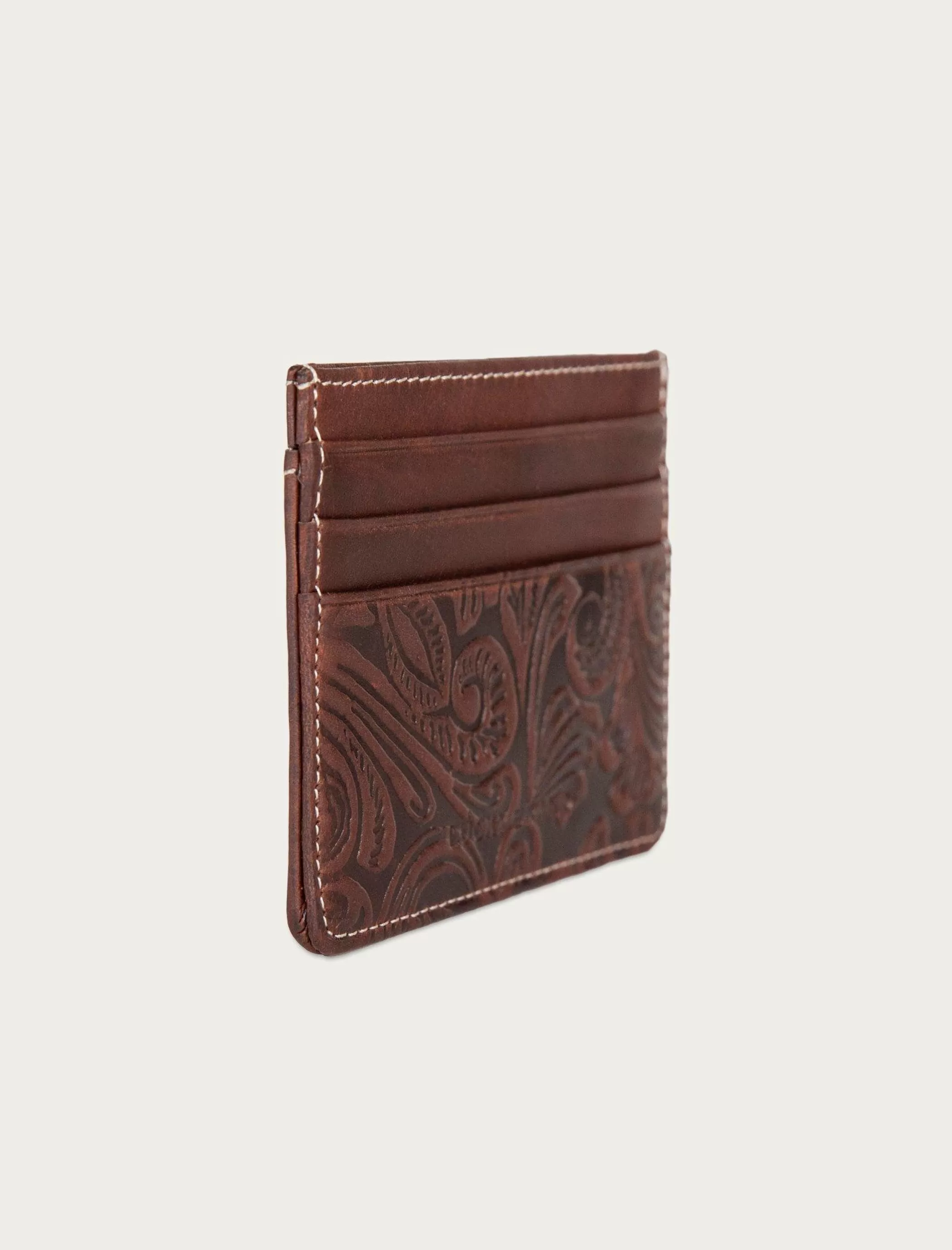 Showcasing a western-inspired embossed design, this leather card case features several card slots to keep ID, cash and credit cards safe.