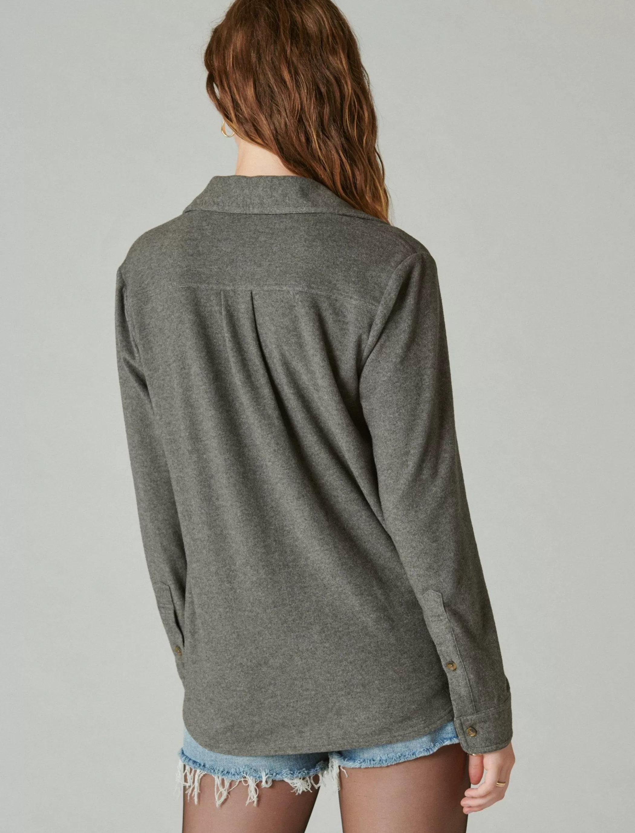 Get comfortable with this cozy knit shirt jacket. From hangouts at home to nights out with friends, this buttery-soft shirt jacket is perfect for throwing on over a graphic tee or long sleeve knit.