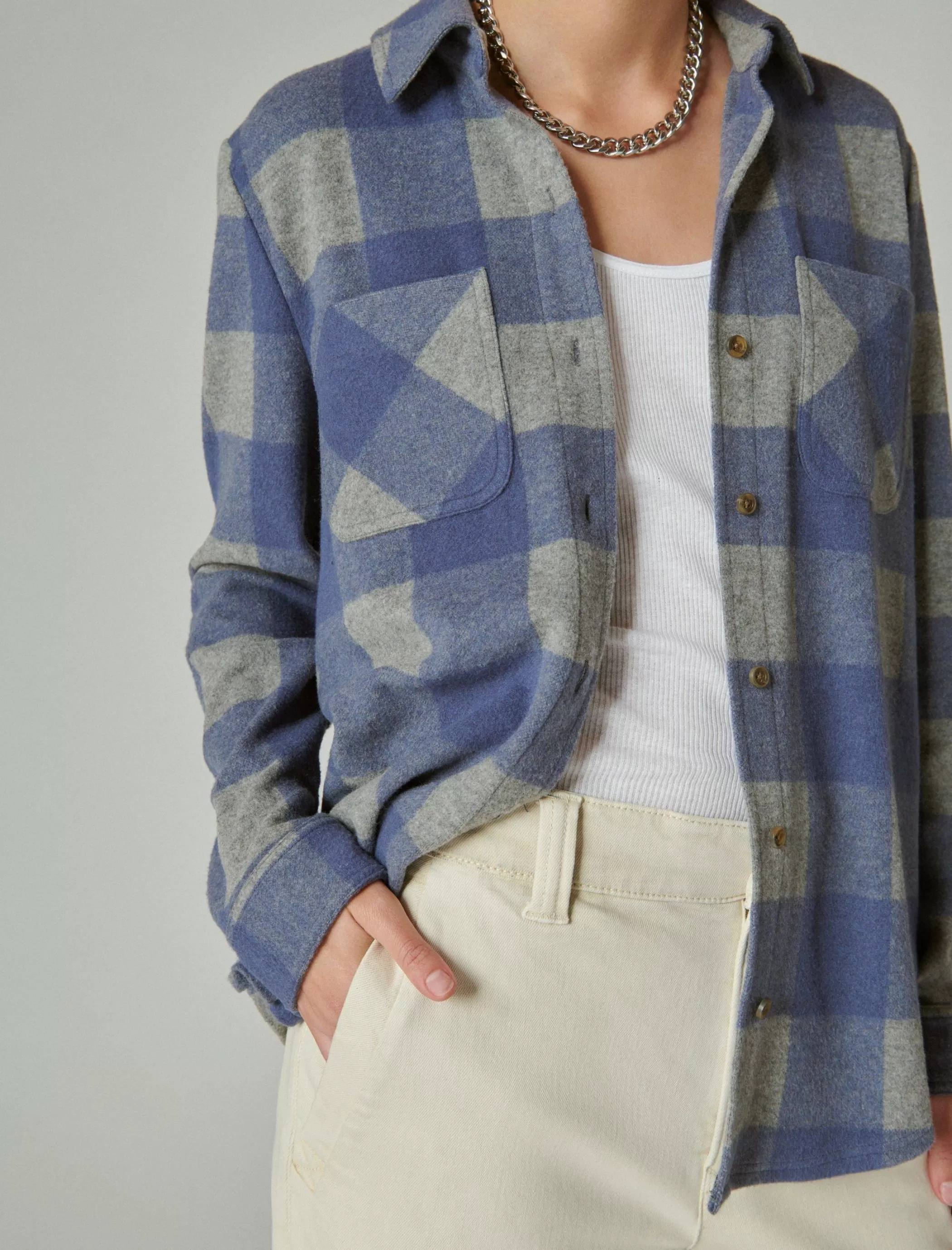 Super soft and cozy for the cool-weather season, this plaid shirt jacket looks good layered over a graphic tee or worn on its own with your fave denim jeans.