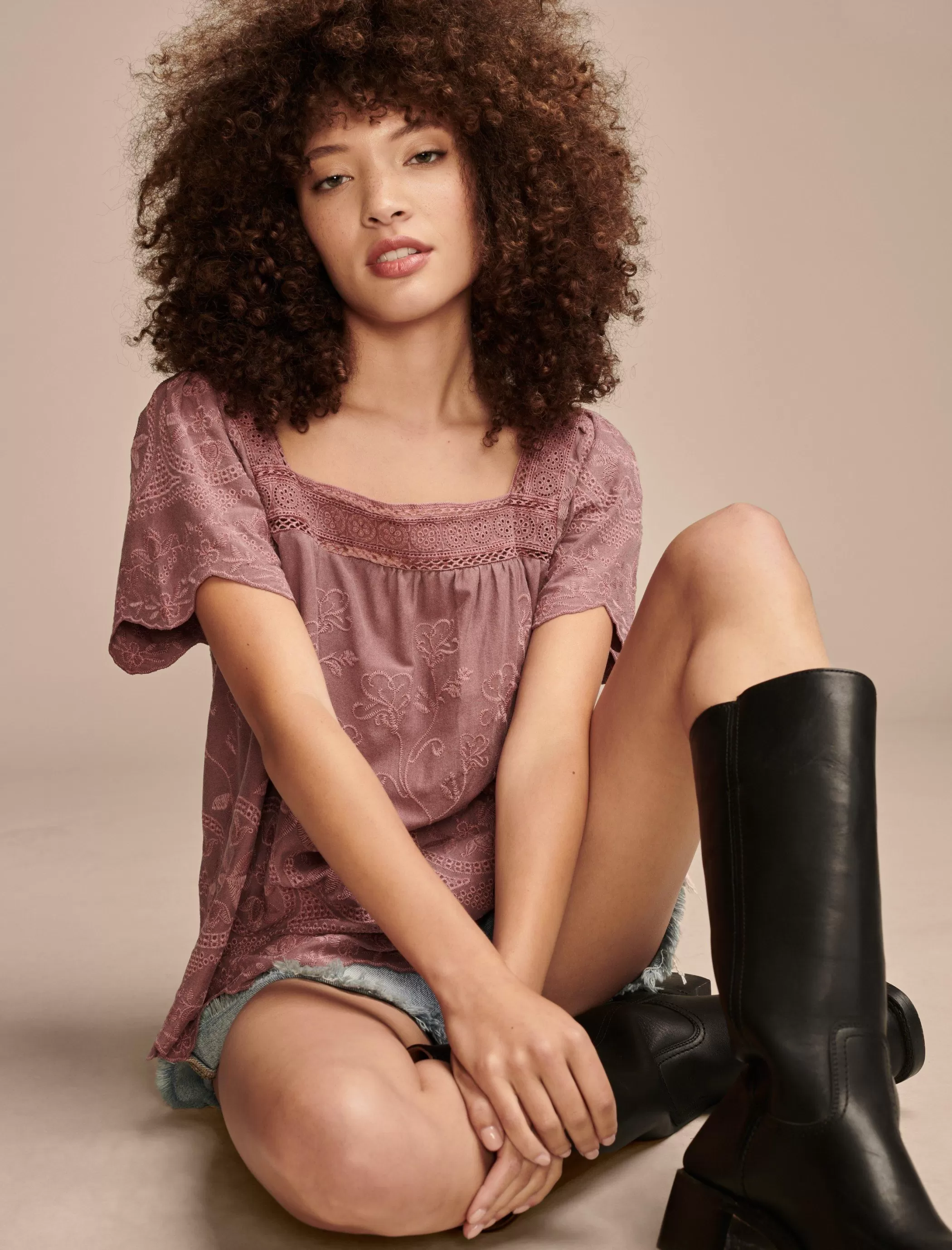 Embroidered florals, flutter sleeves and scallop edges—what’s not to love? Made of soft, comfy cotton-modal, this top is destined to become your new fave go-to style.