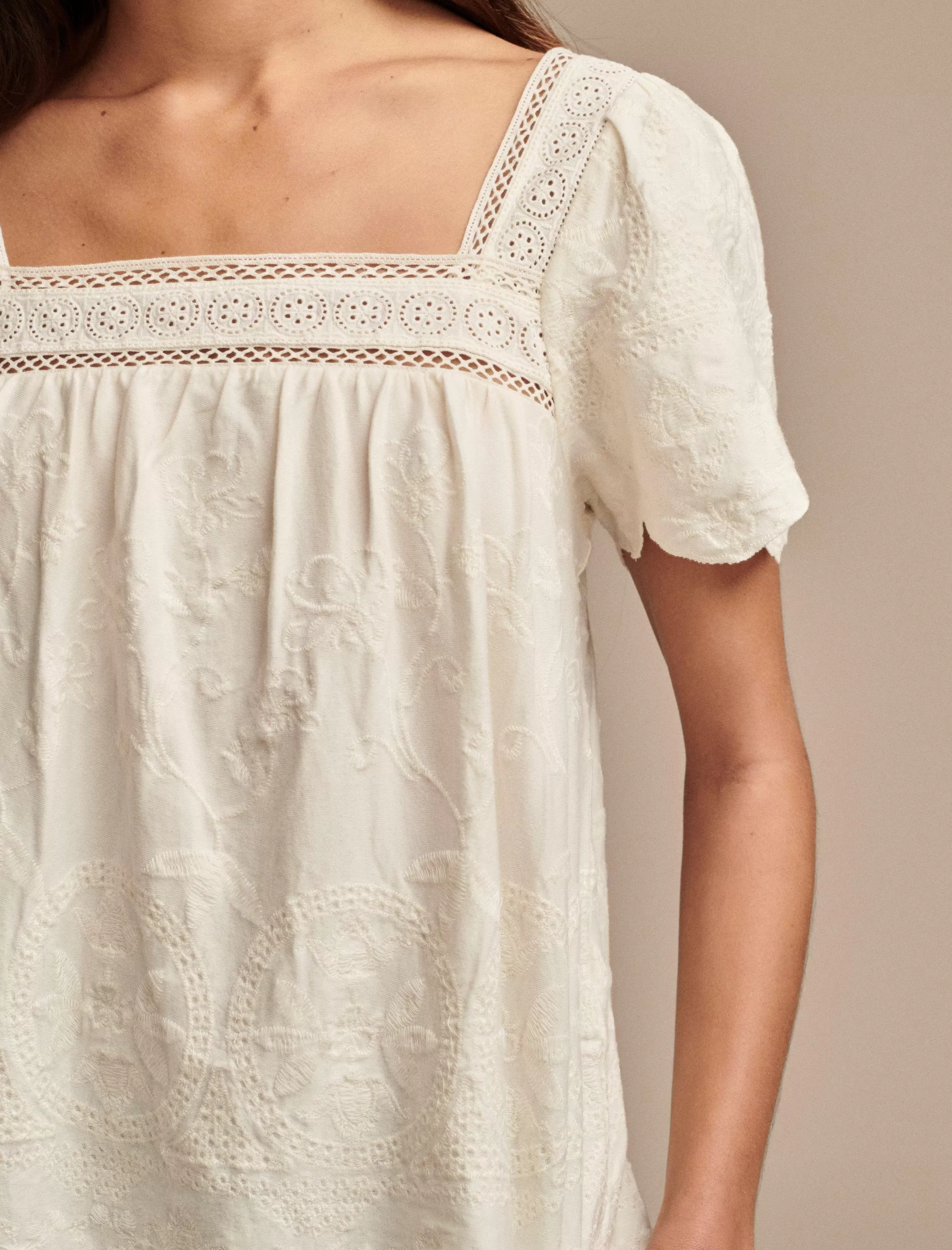 Embroidered florals, flutter sleeves and scallop edges—what’s not to love? Made of soft, comfy cotton-modal, this top is destined to become your new fave go-to style.