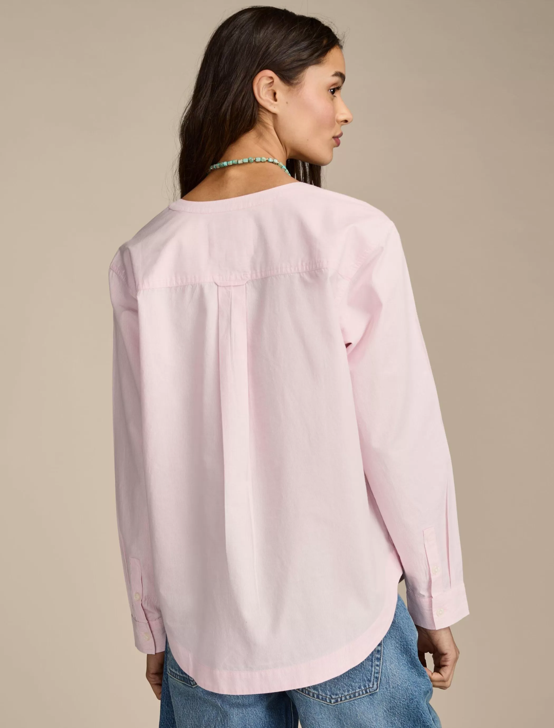 This boyfriend shirt keeps you looking and feeling cute and comfy thanks to its roomy, relaxed fit and flirty lace-up front.