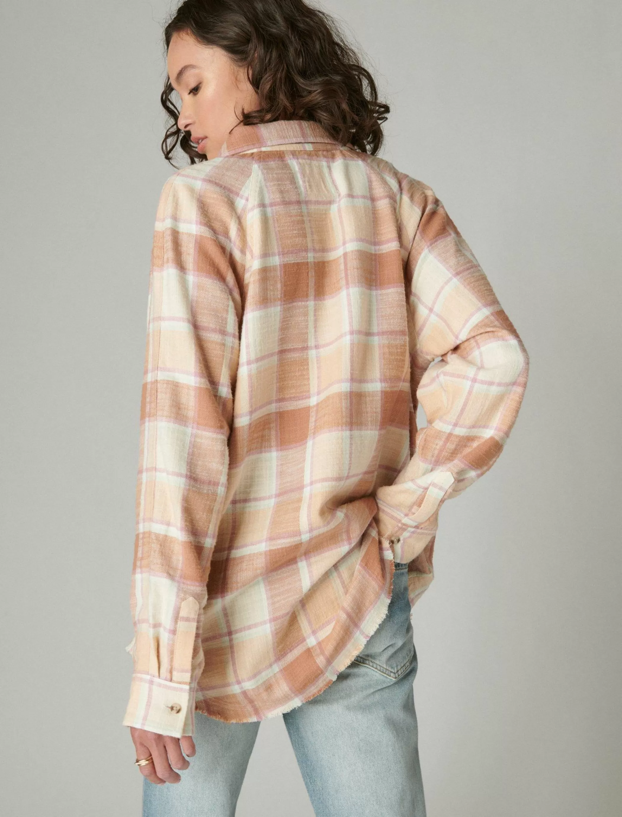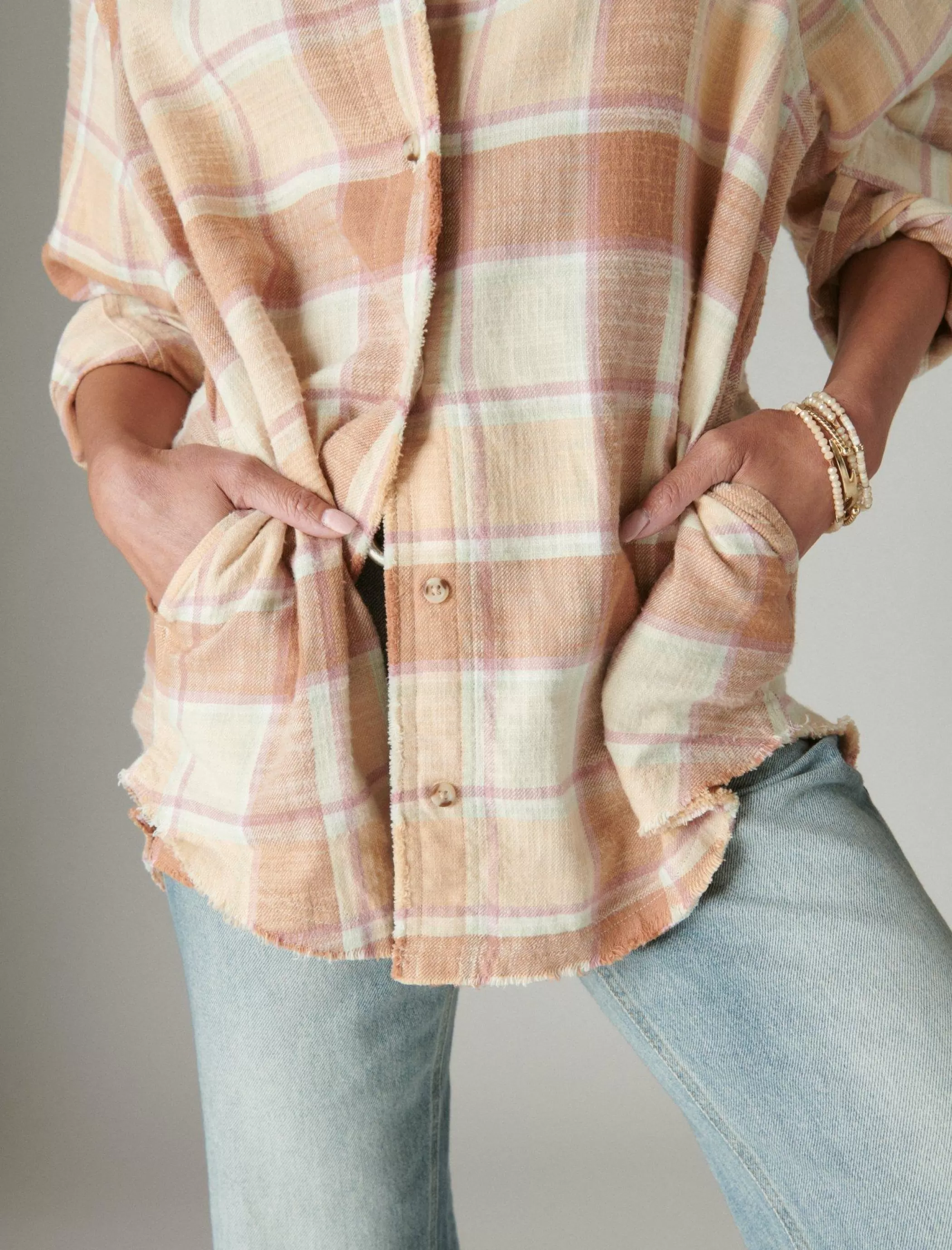 Perfectly oversized for easy layering, this tunic top shows off a timeless plaid pattern, distressed details and side pockets in soft, pure cotton fabric.