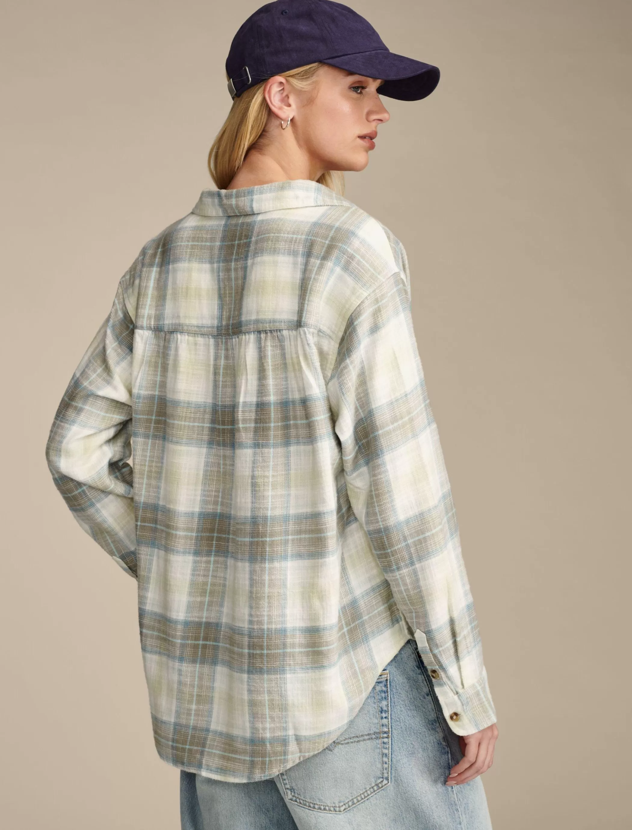 Lucky Brand Blouses*oversized plaid boyfriend pocket shirt olive plaid