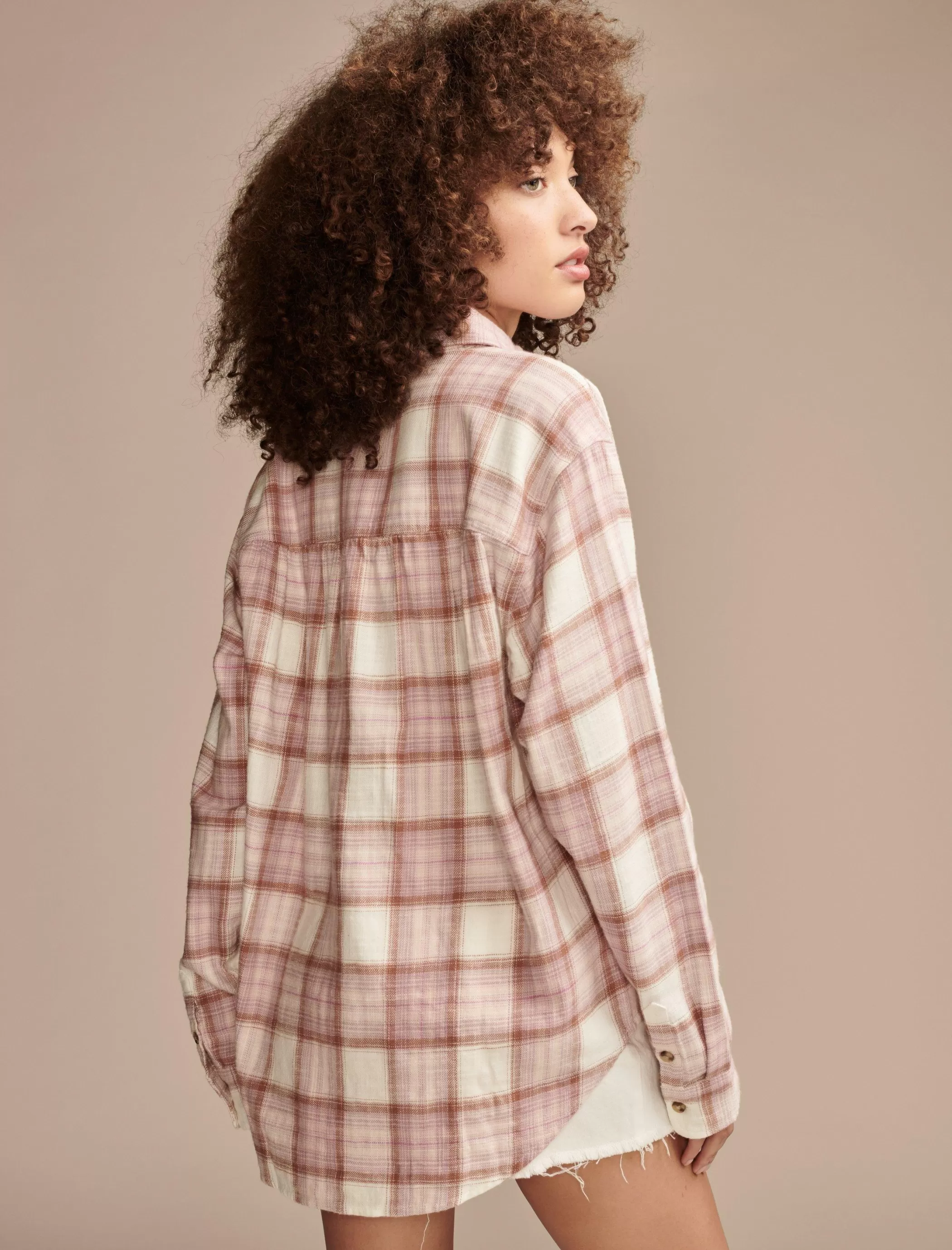 Lucky Brand Blouses*oversized plaid boyfriend pocket shirt sepia rose plaid
