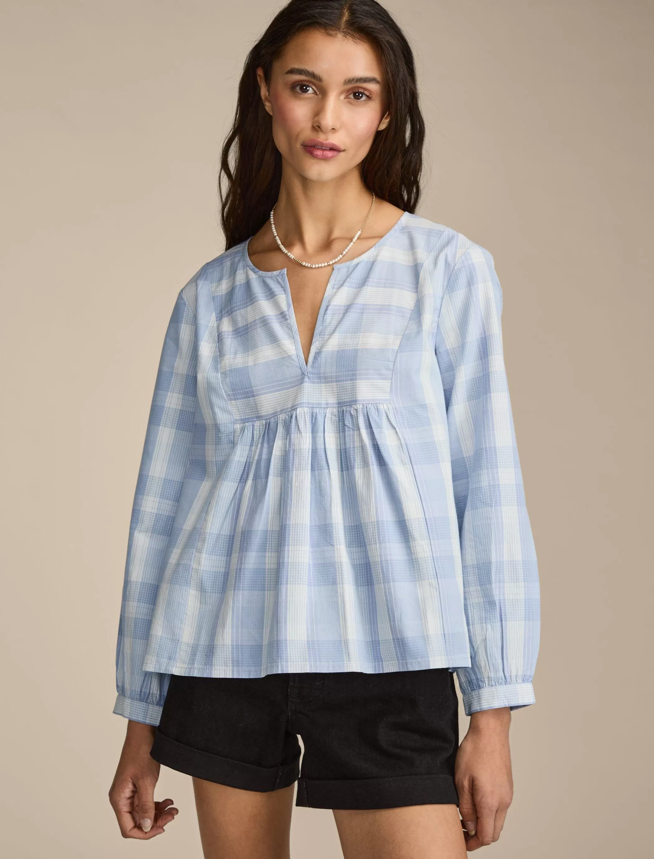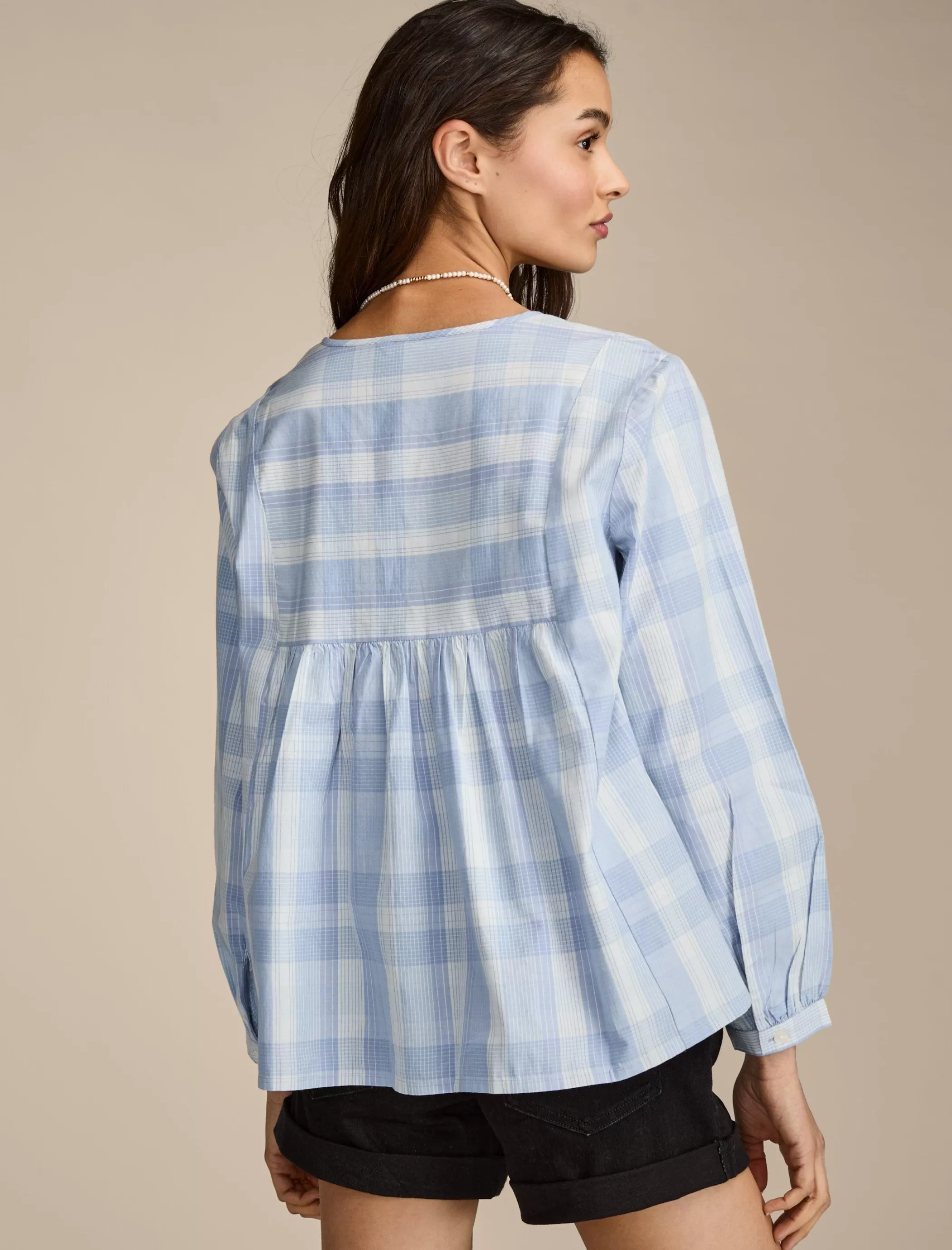 Lucky Brand Blouses*prep peasant blouse sky blue plaid