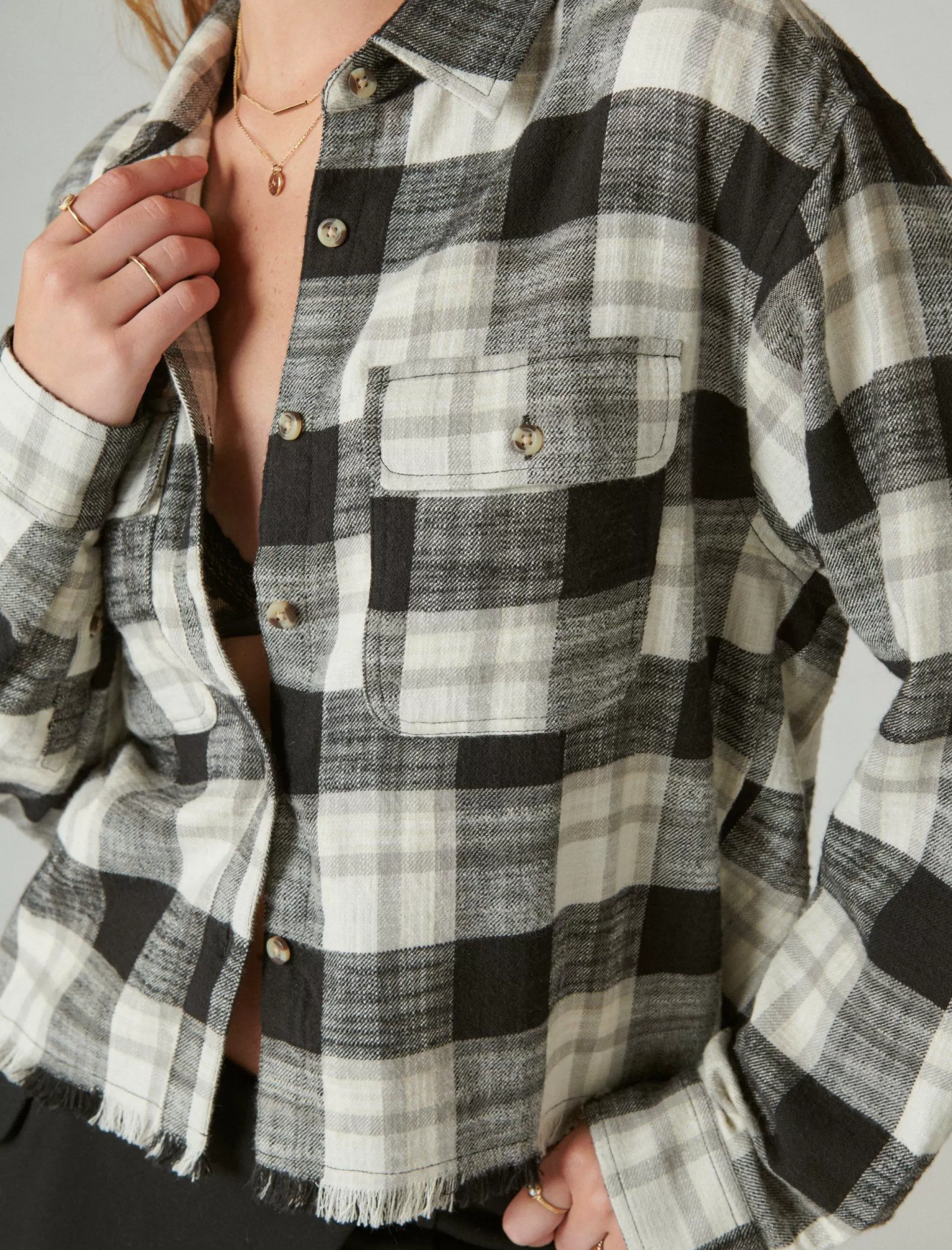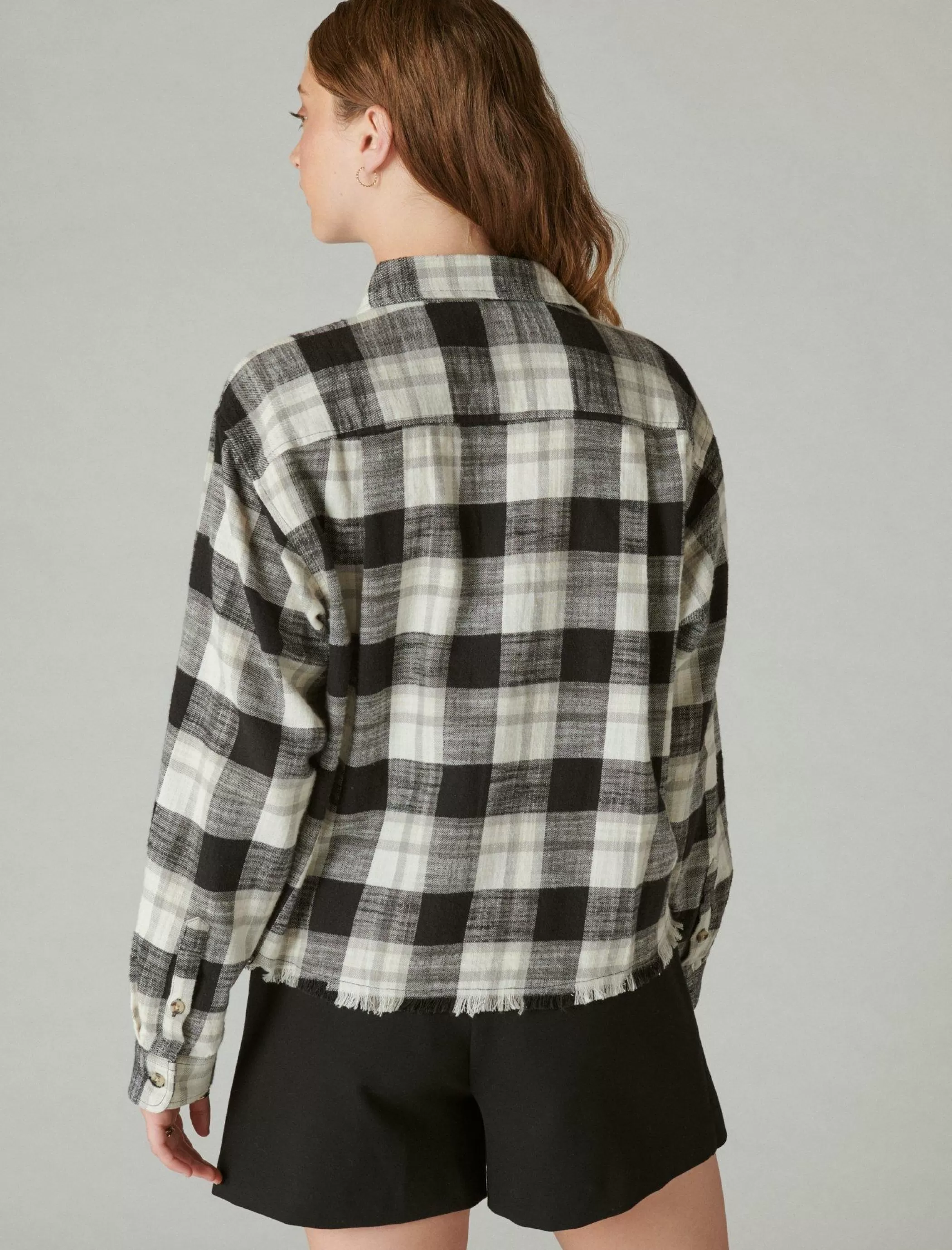 Lucky Brand Blouses*raw edge cropped plaid lucky black plaid