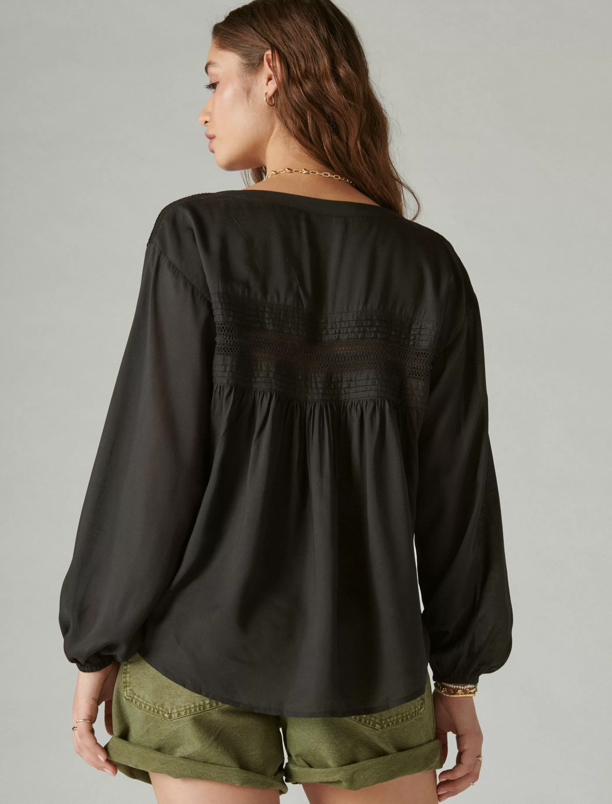 From everyday to special occasions, this long sleeve blouse shows off pretty textured, pintuck details in soft rayon fabric making it a go-to choice any day of the week.