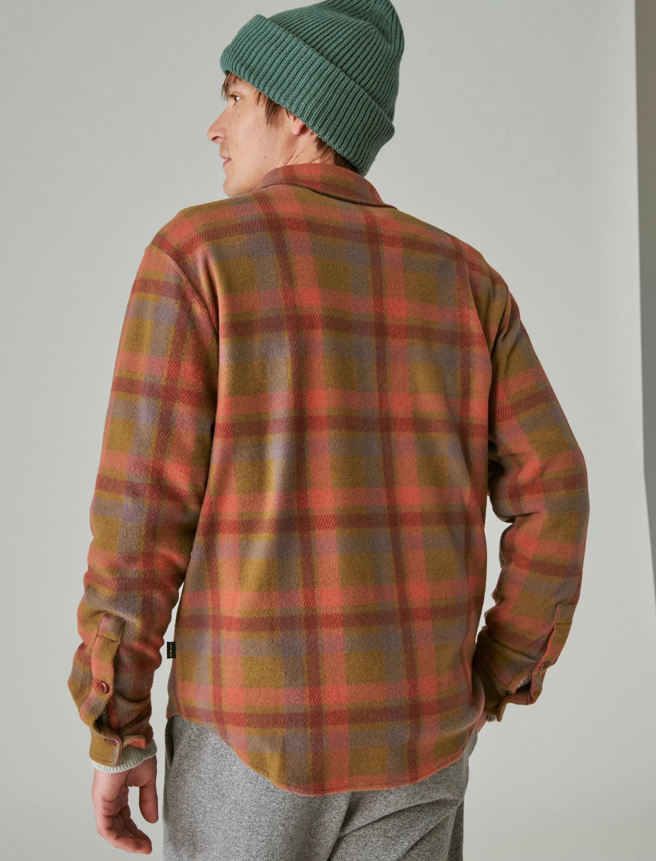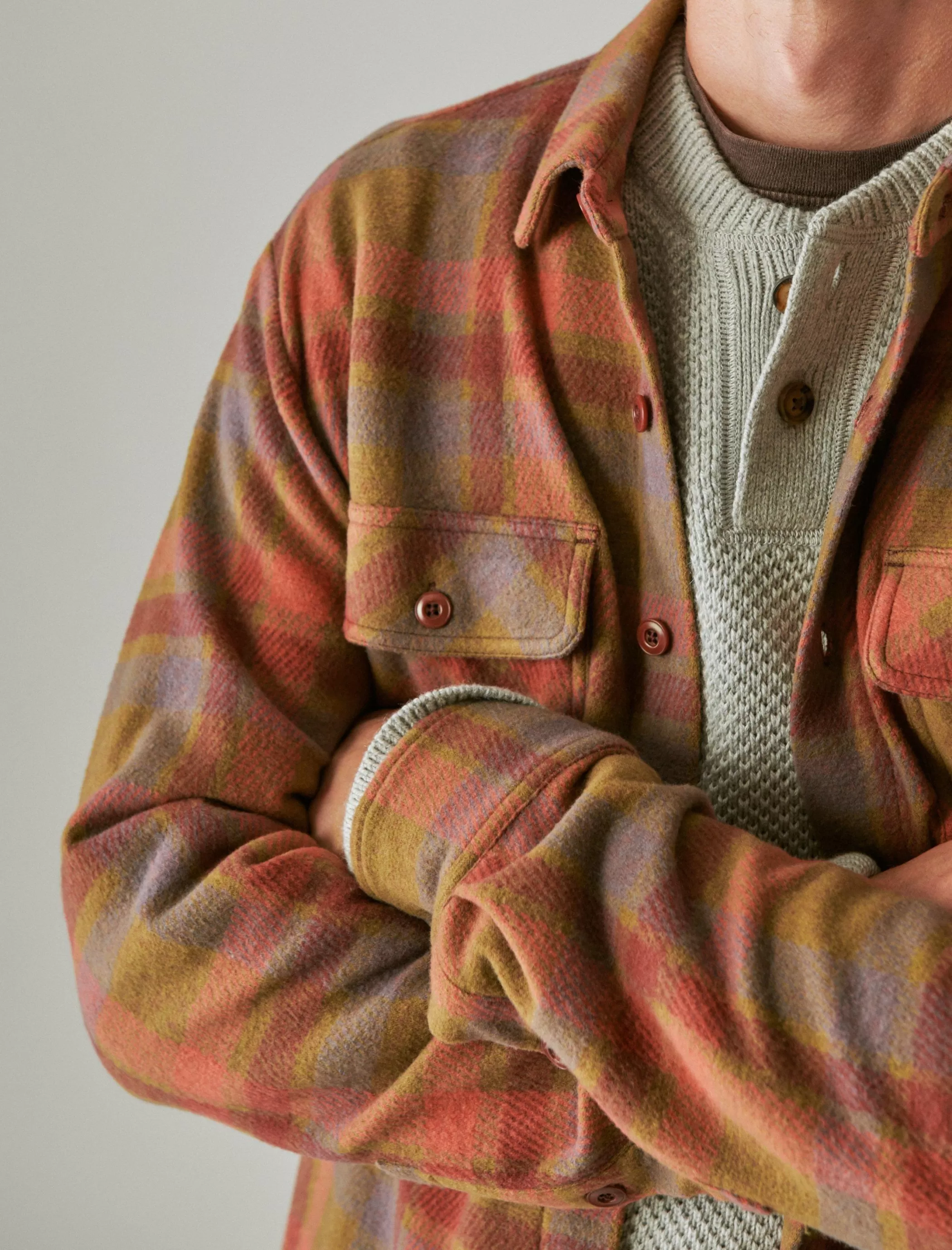 Brushed for extra softness, this button-down knit shirt shows off a classic plaid pattern, double flap pockets and a curved hem. Wear yours on its own or layer it over a tee or sweater to complete the ‘fit.