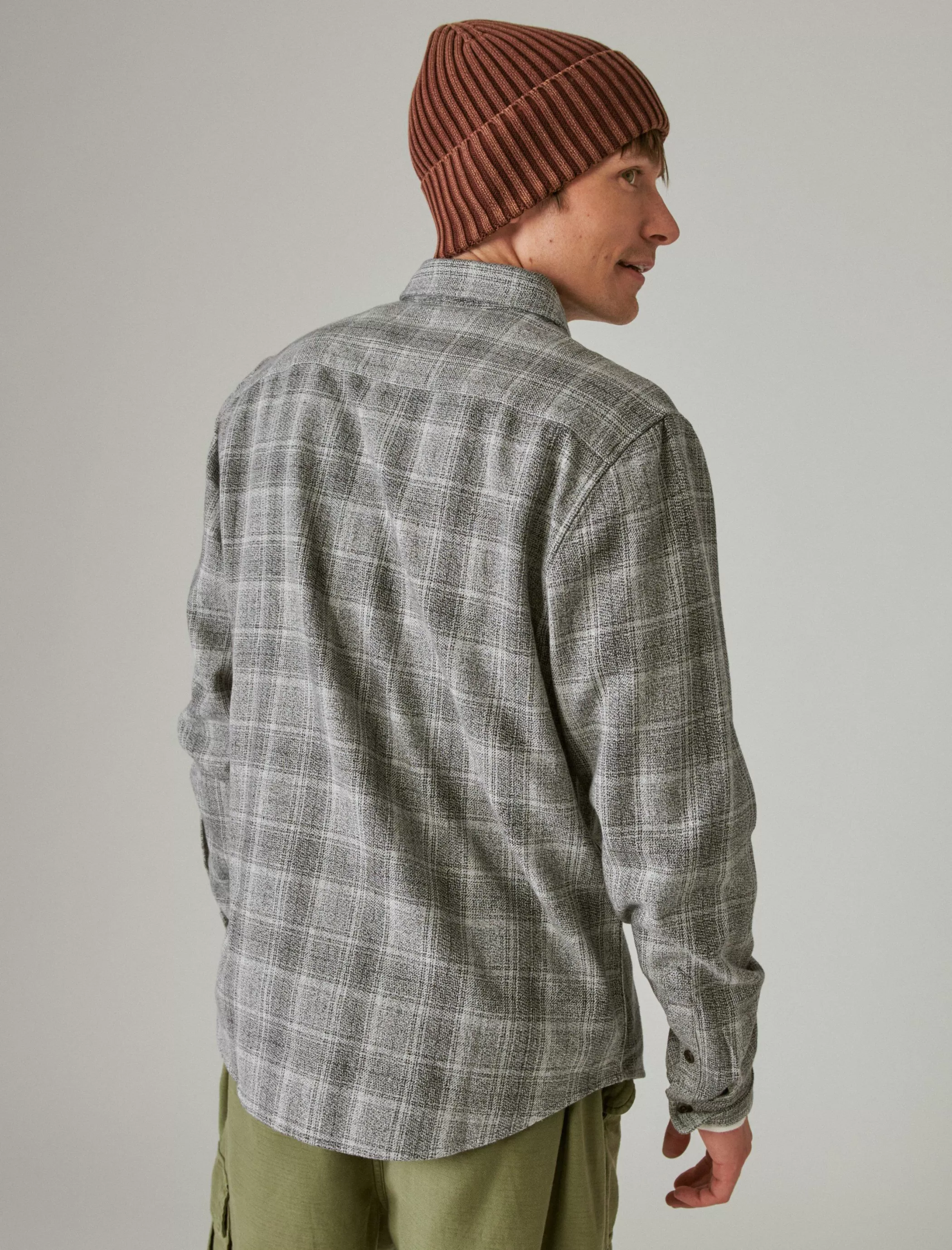 Knit from 100% cotton, this utility-inspired button down flannel is designed with a classic plaid pattern, spread collar…