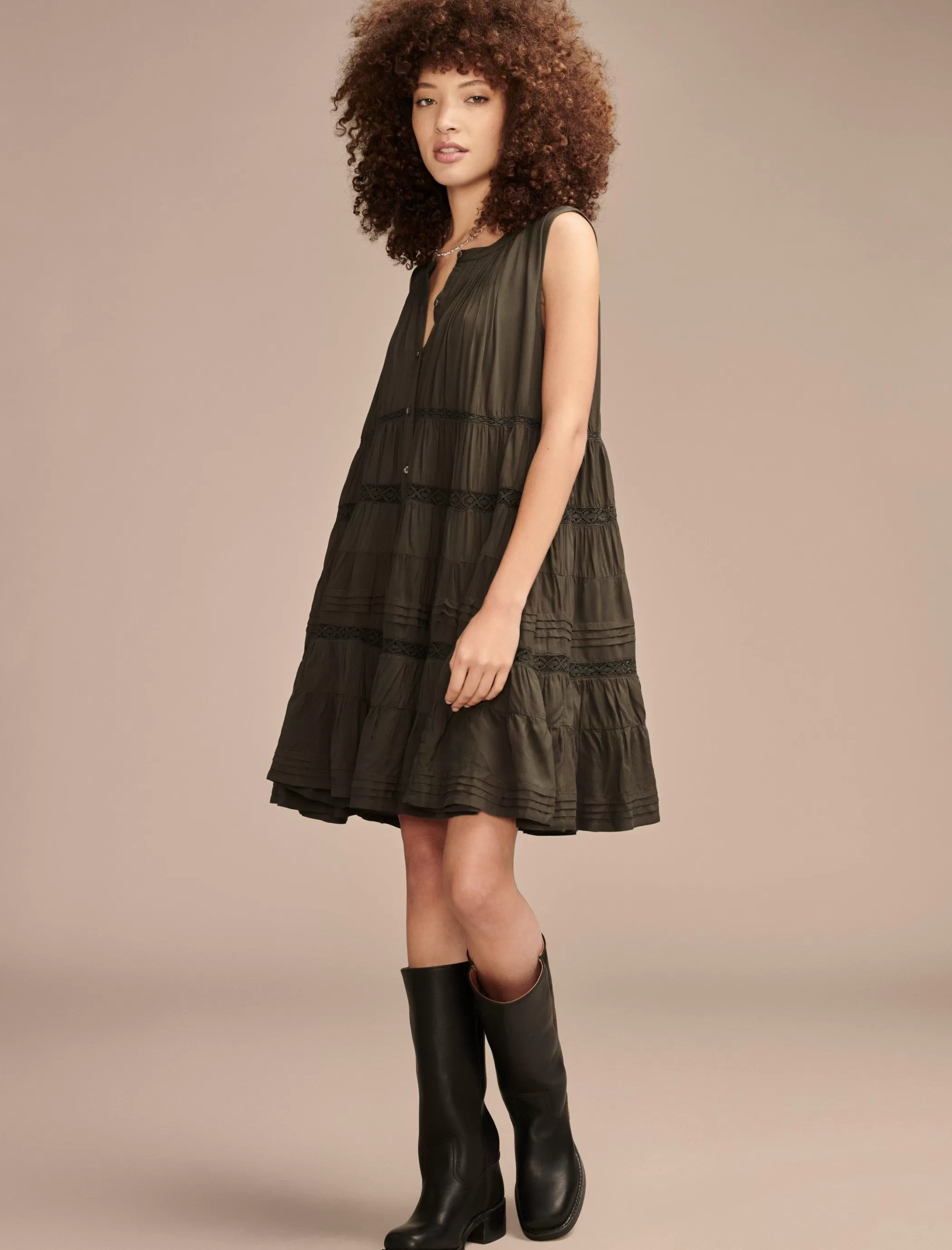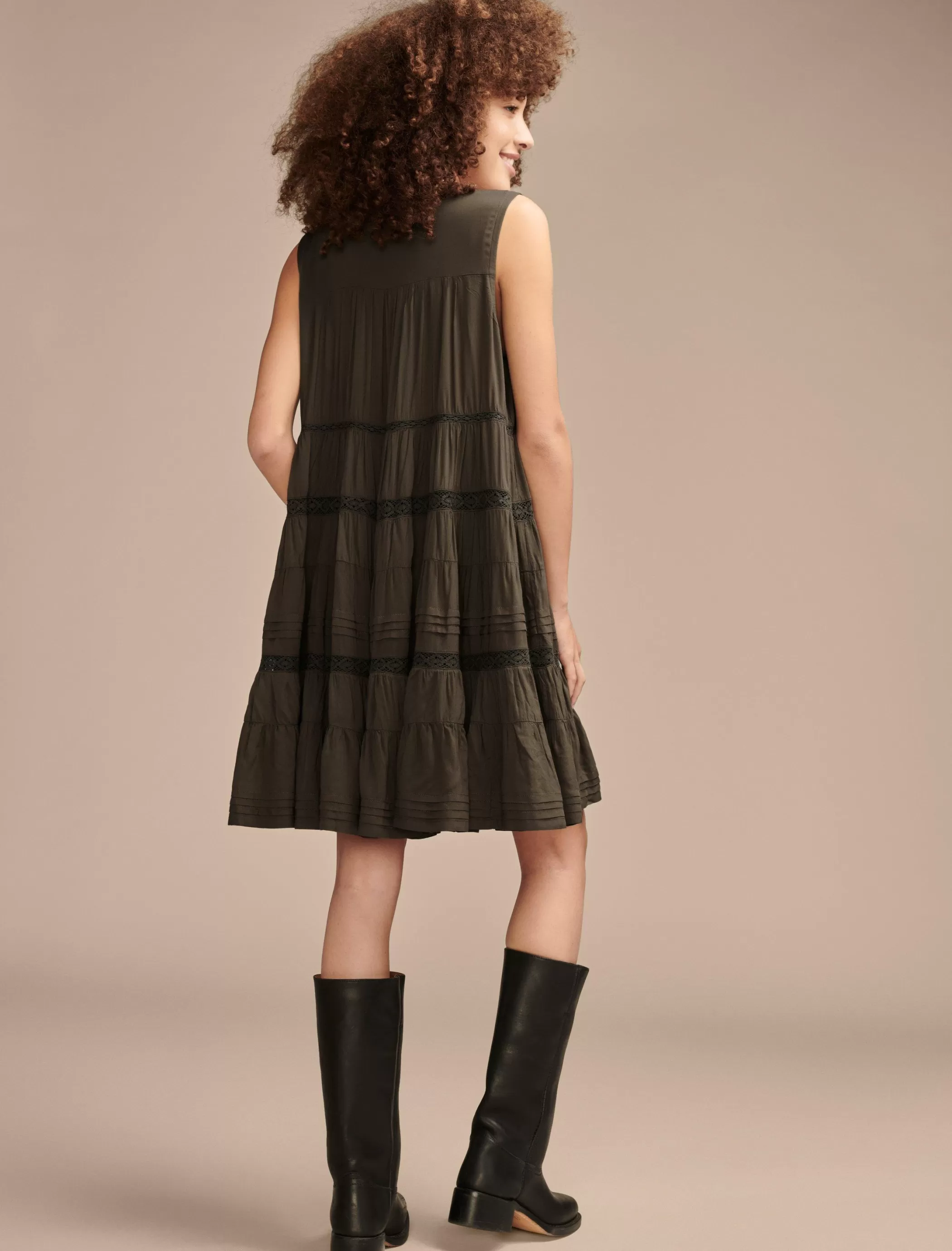The swing dress you’ve been dreaming of. Made of soft, airy viscose fabric, this mini flatters with an A-line silhouette that—you guessed it—gently swings as you move, and features pretty lace detailing for a soft, romantic-like look.