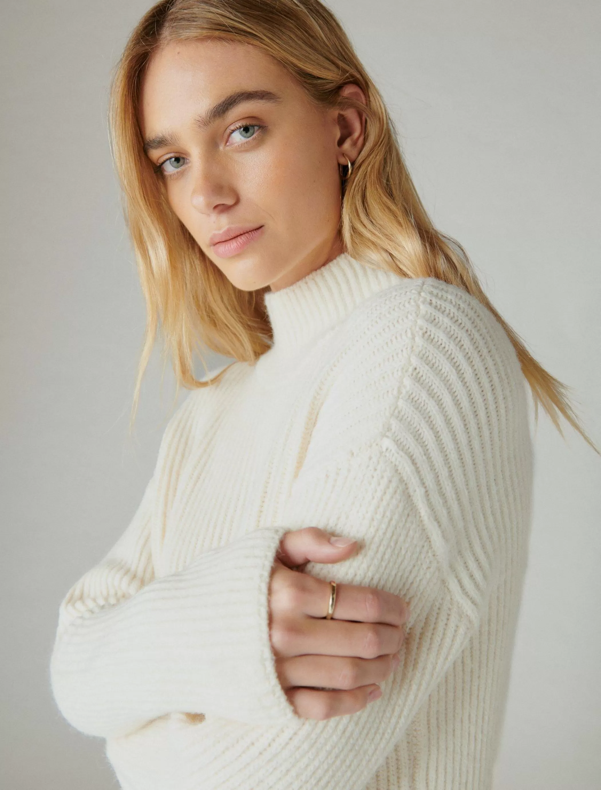 Break out your boots and leather jacket and pair them with this so cozy sweater dress featuring a mock neck in warm wool-knit fabric.