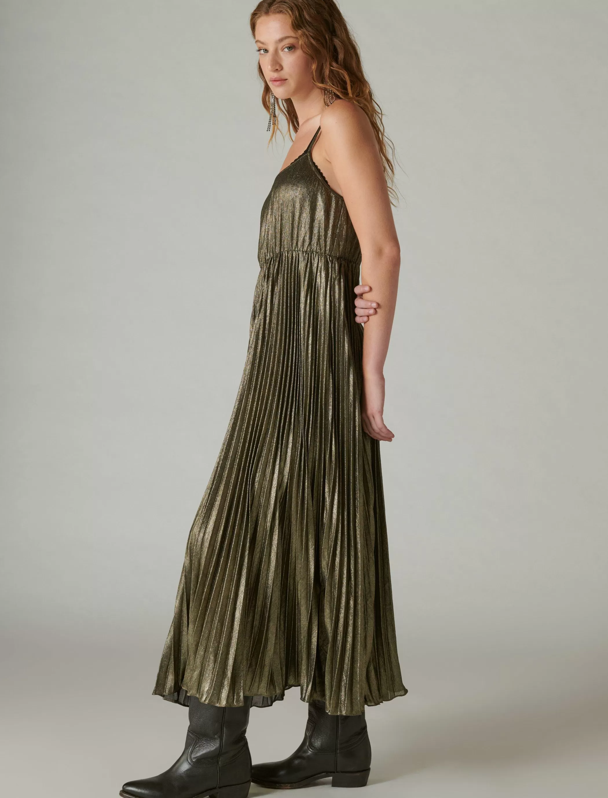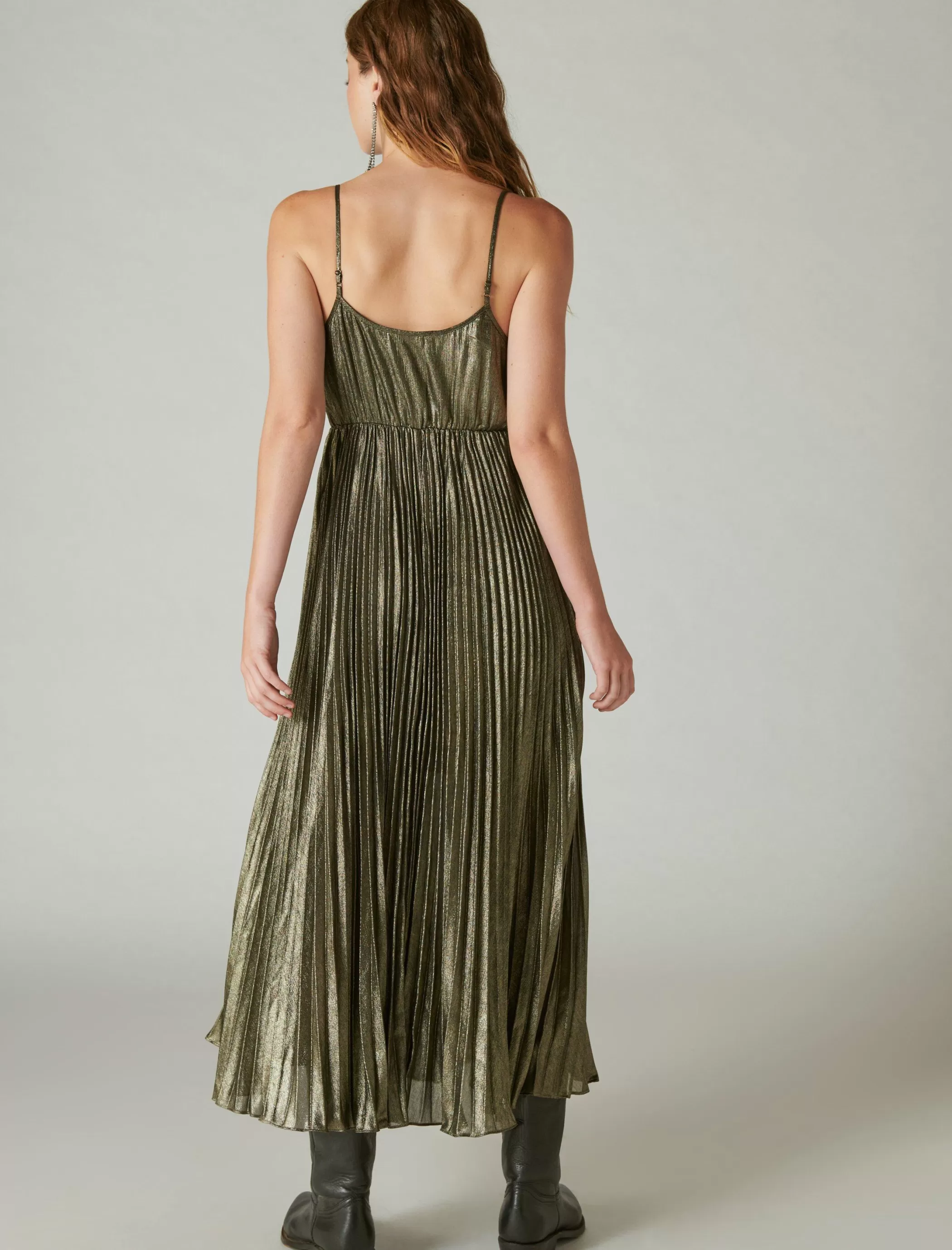 Pretty in pleats, this midi dress shows off a shimmery silhouette perfect for parties, get-togethers and more.