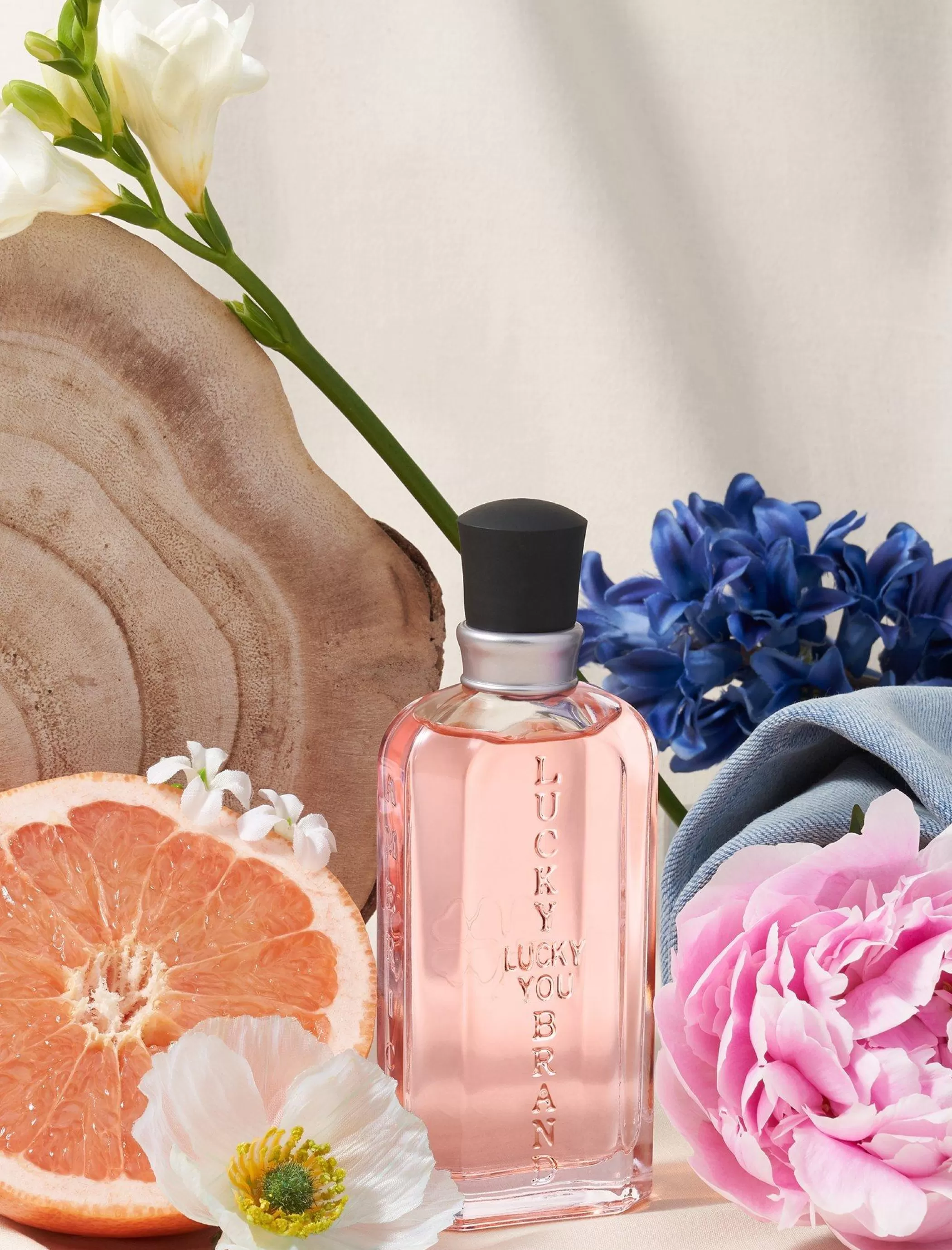 Lucky Brand Lucky You Women Eau De Toilette 3.4 Oz. Spray is a bright, fun-loving fresh floral. Capturing the all-American spirit of LA, the clean feminine scent possesses a blend of refreshing jasmine, poppy and grapefruit, with warmer notes of amber, sandalwood and musk to bring balance. This perfume is ideal for the woman who fancies a delicate, floral fragrance perfect for casual or daytime wear.