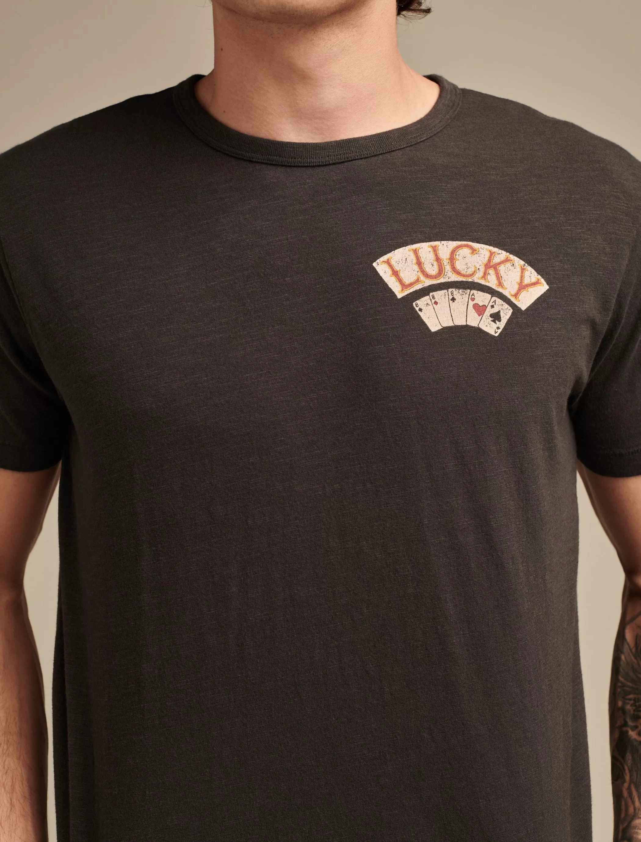 Your lucky hand is here. Featuring a small front and full back graphic, this tee will be one of your new favorites.