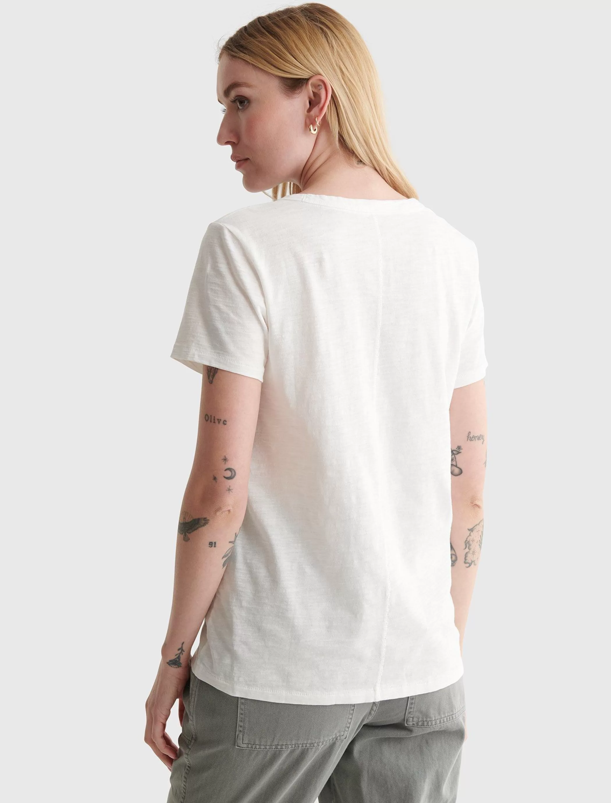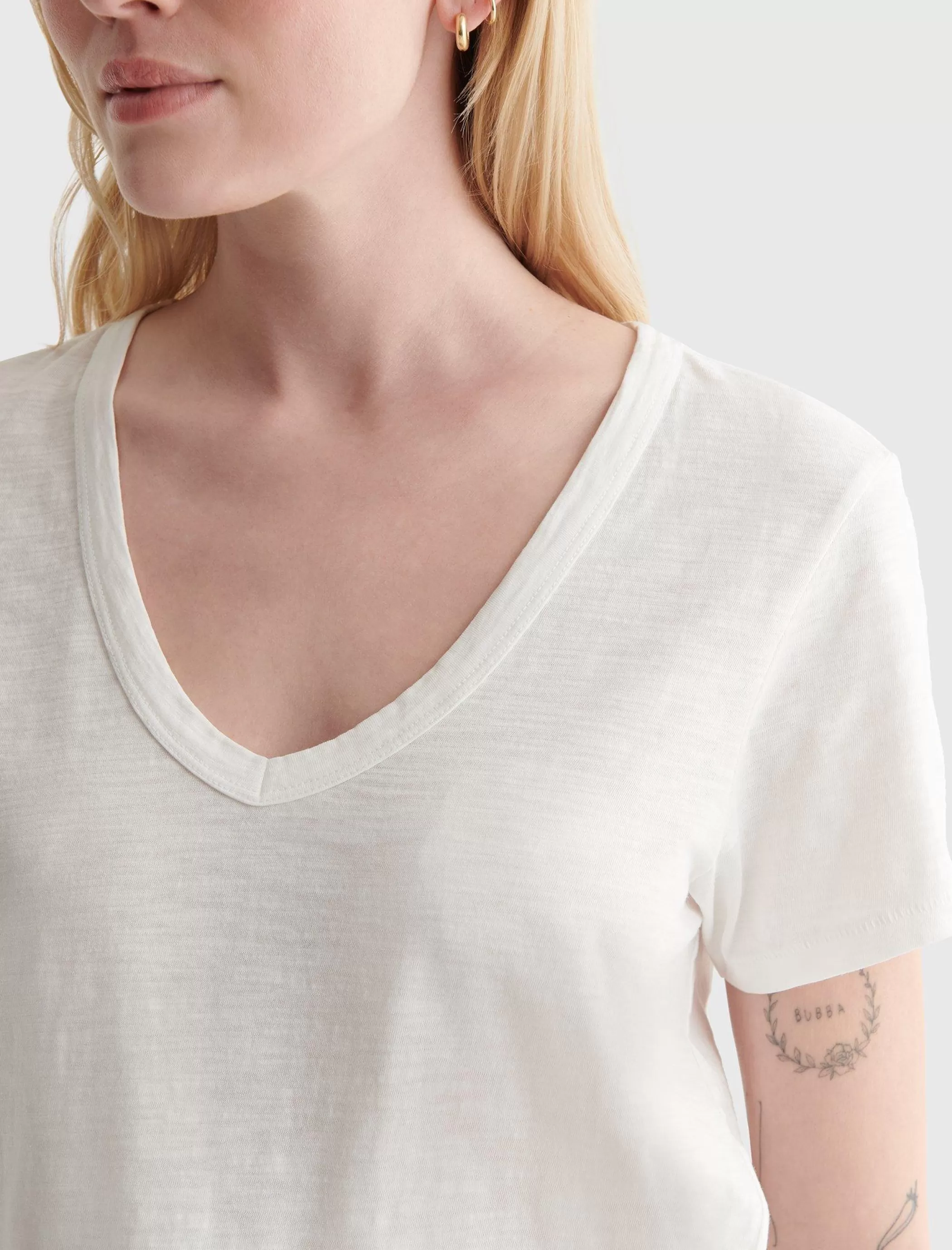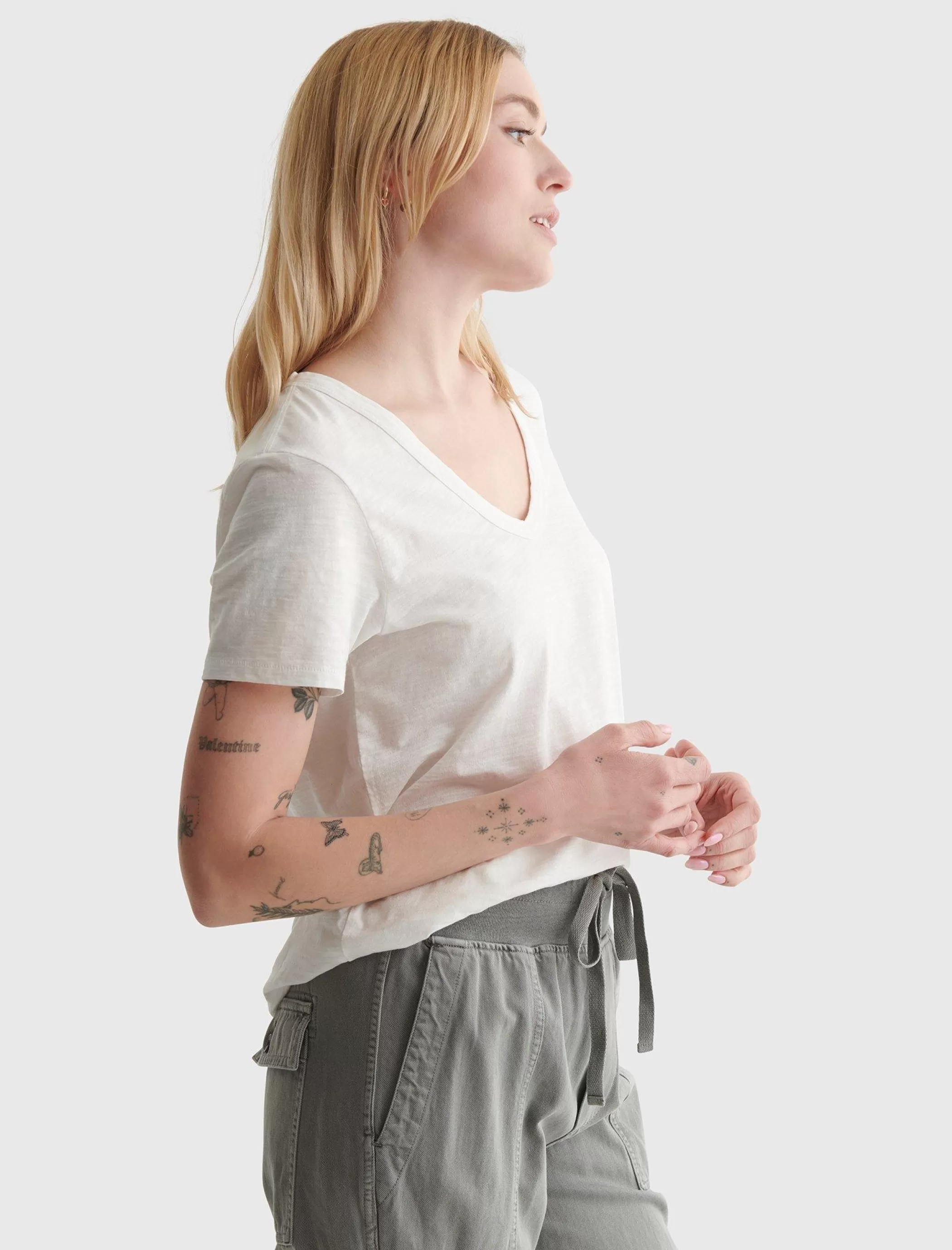 Make things simpler in this ultra-soft, all day, everyday cotton tee dressed up in gorgeous colors and a long and low V-neck. Pair with your fave Lucky denim shorts and you’ve got your any-season look.