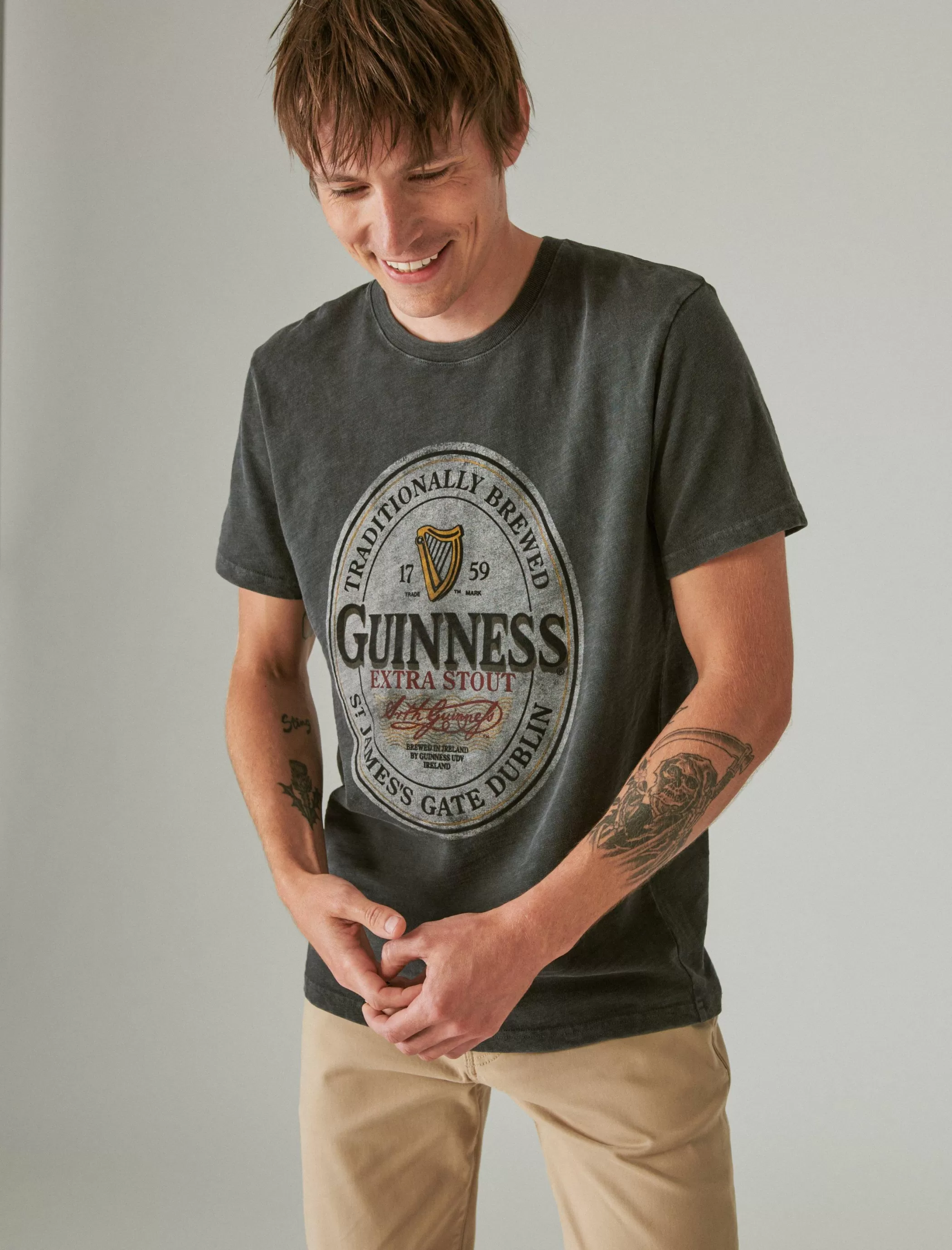 From the limited edition Guinness x Lucky Brand collab, this soft cotton-jersey tee features the Irish stout brand’s ova…