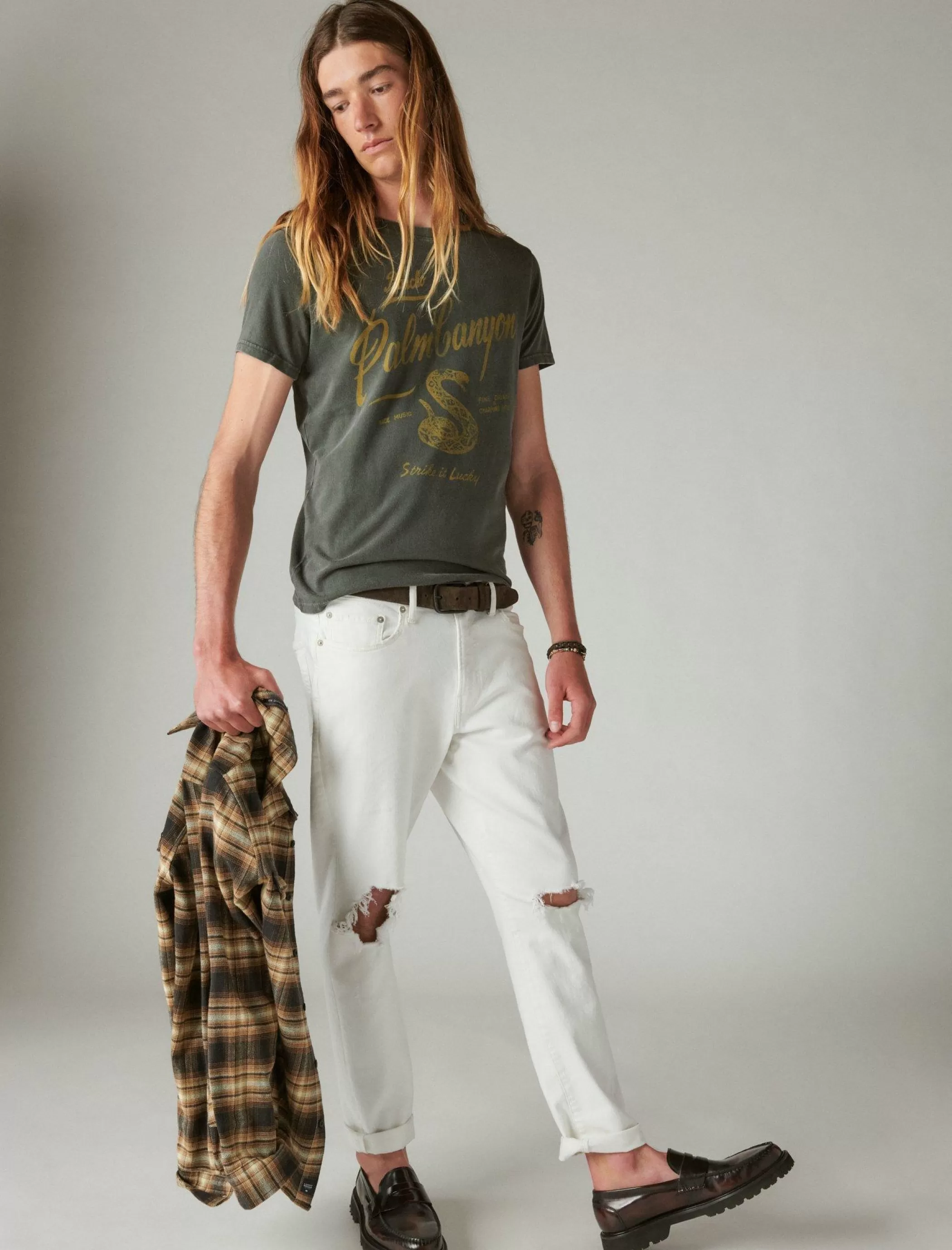 Make an easy wardrobe decision and reach for this soft cotton tee featuring a comfortable crewneck and faded Palm Canyon graphic at the front.