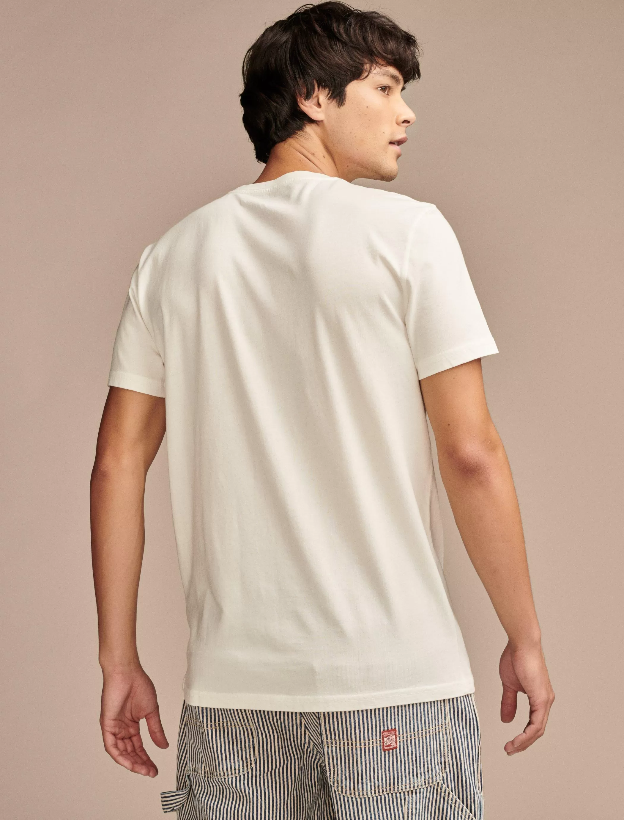 Keep the good vibes going with this crewneck tee featuring a faded Woodstock graphic in soft, one hundred percent cotton.