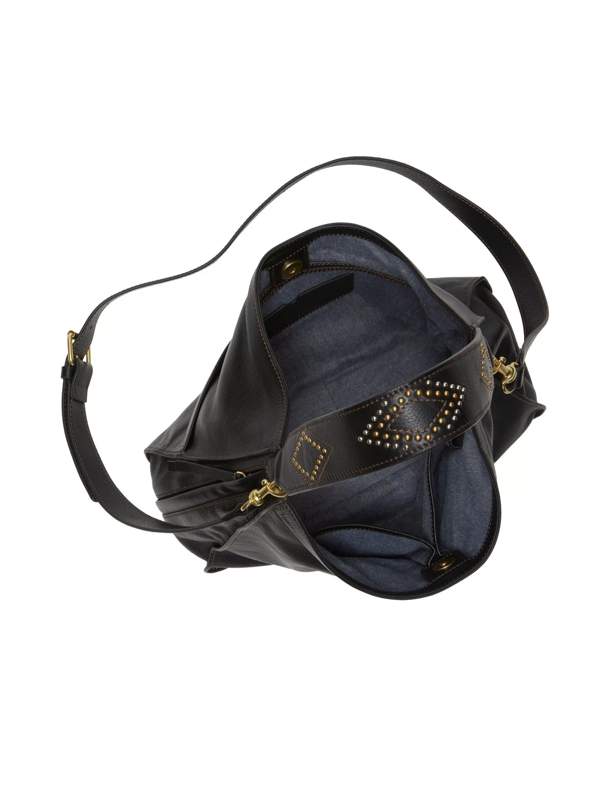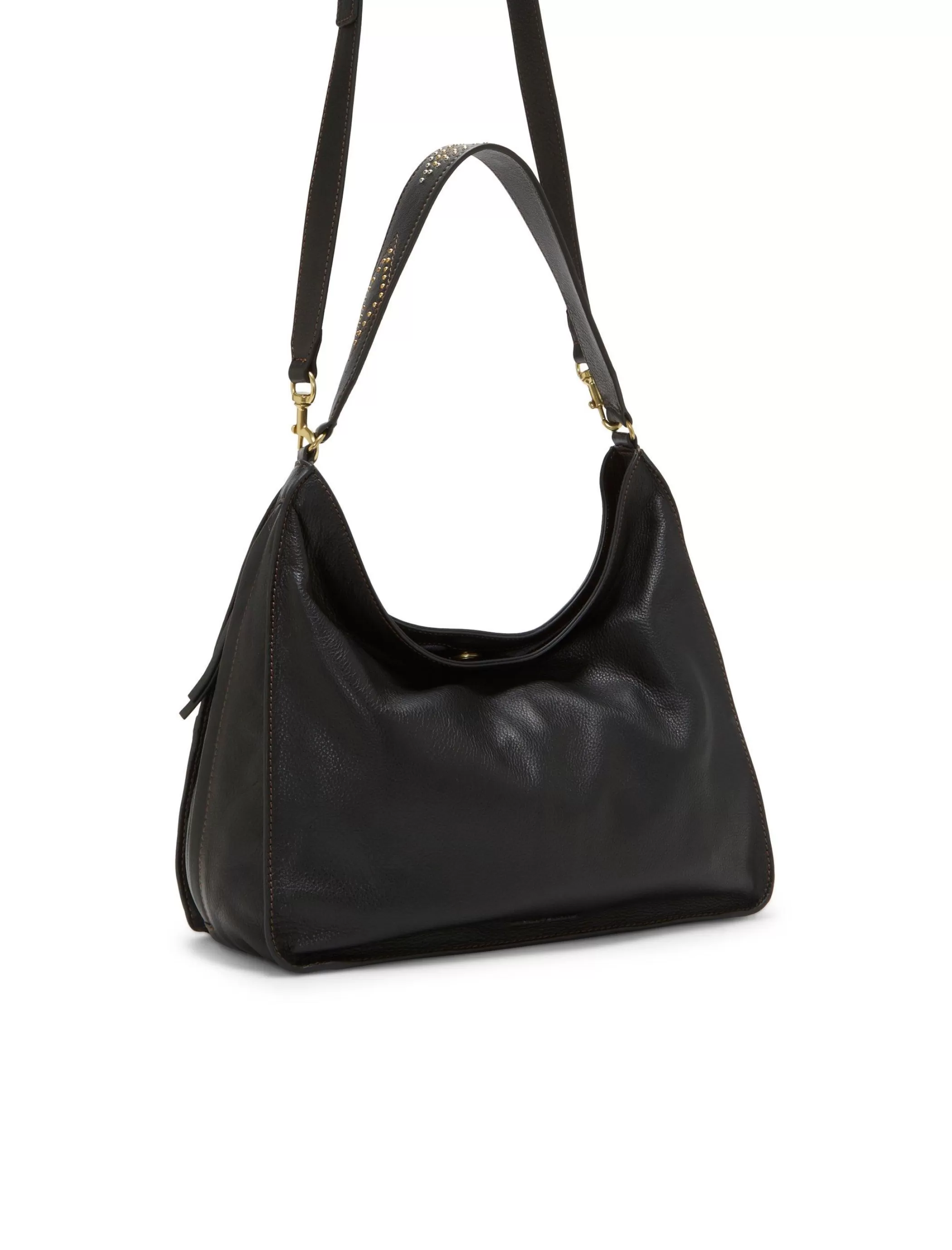 Strut the streets in serious style with the Iris shoulder bag, featured in soft leather with a studded, removable crossbody strap, magnetic closure and multiple interior and exterior pockets.