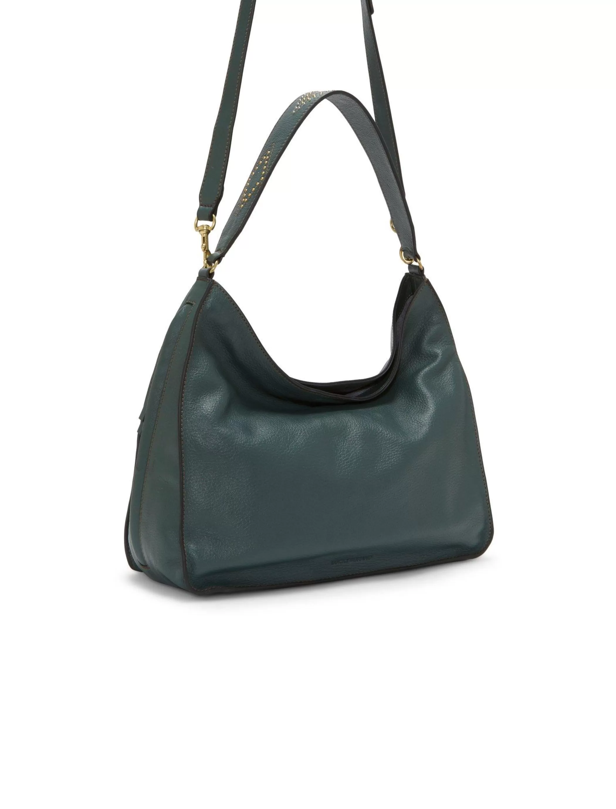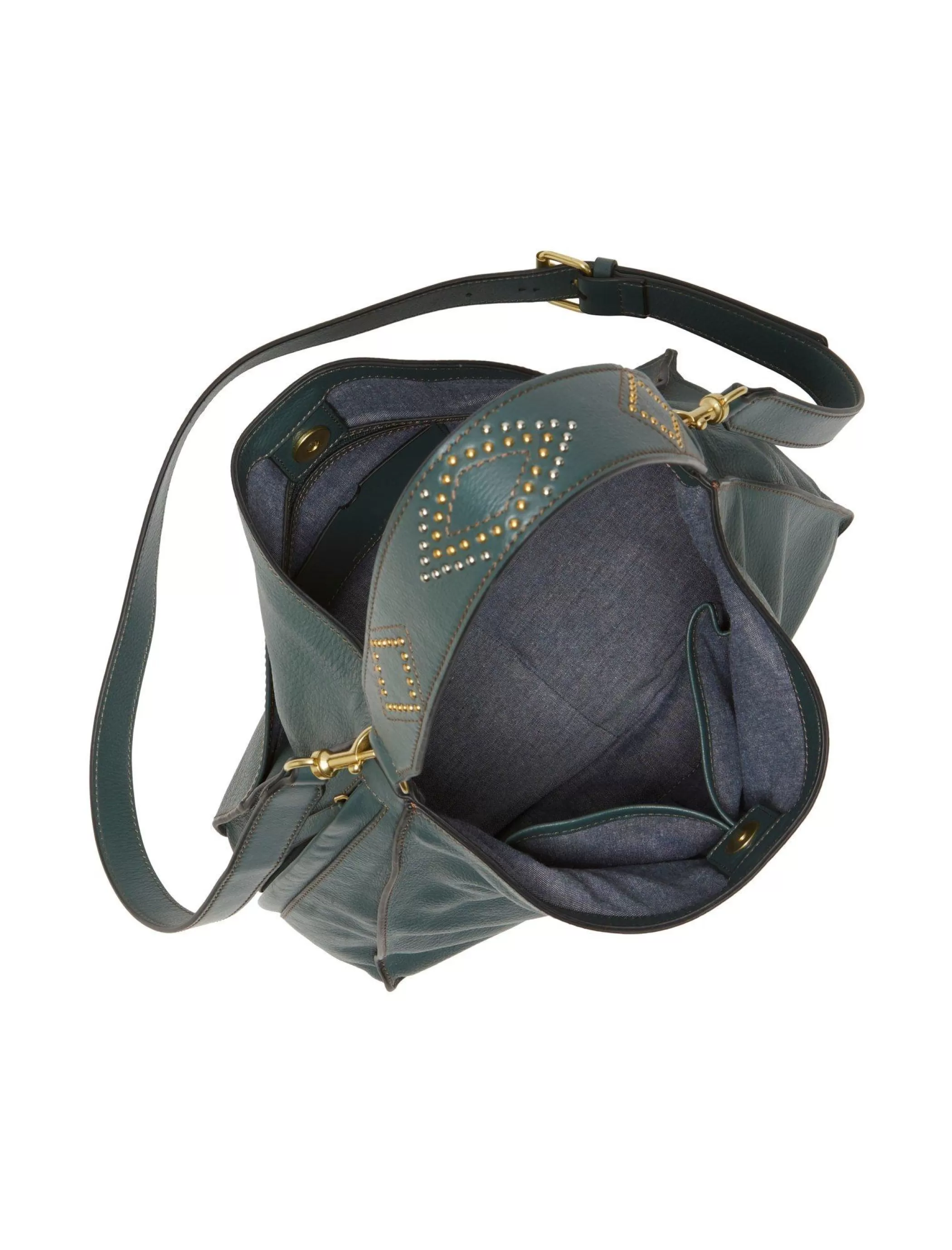 Strut the streets in serious style with the Iris shoulder bag, featured in soft leather with a studded, removable crossbody strap, magnetic closure and multiple interior and exterior pockets.