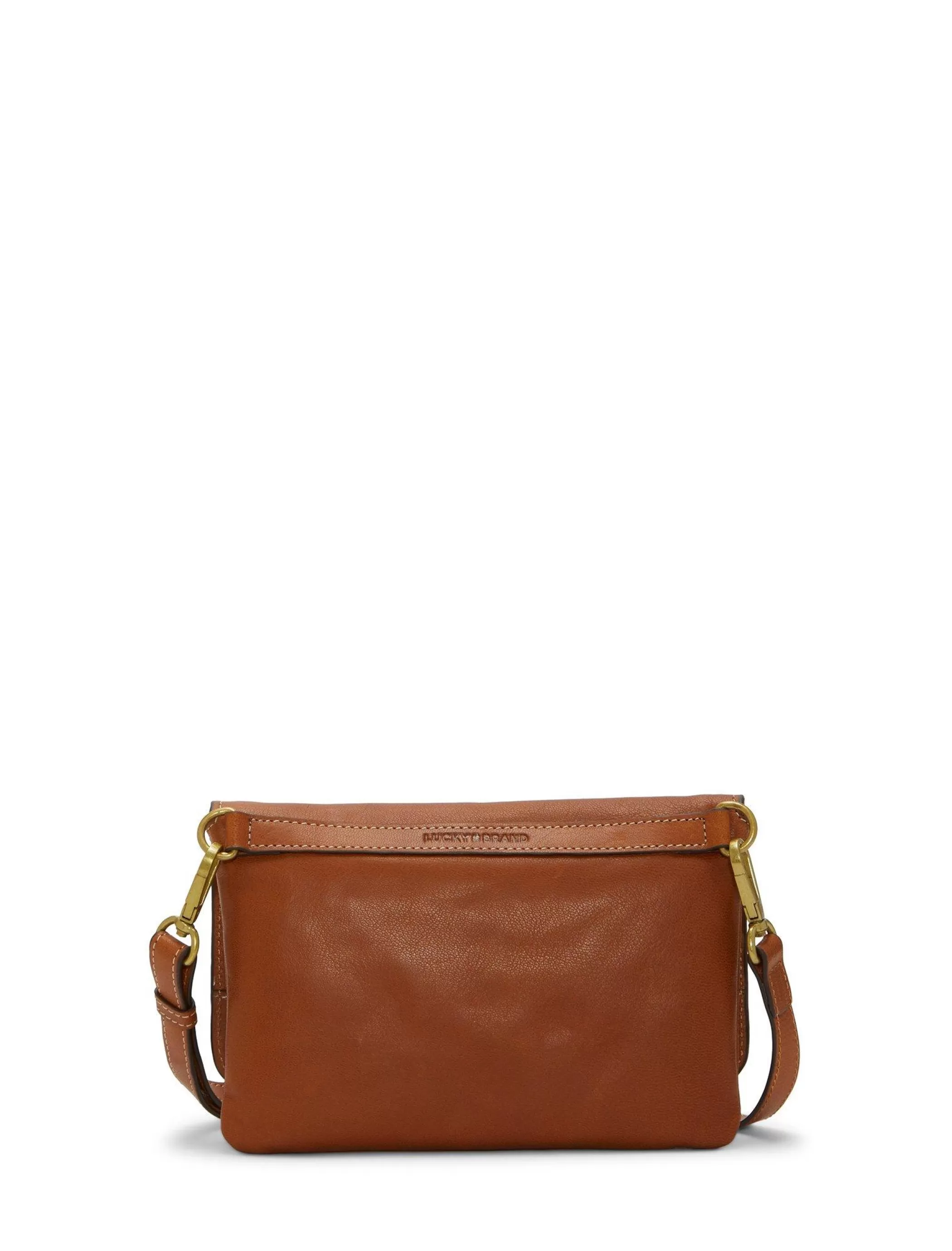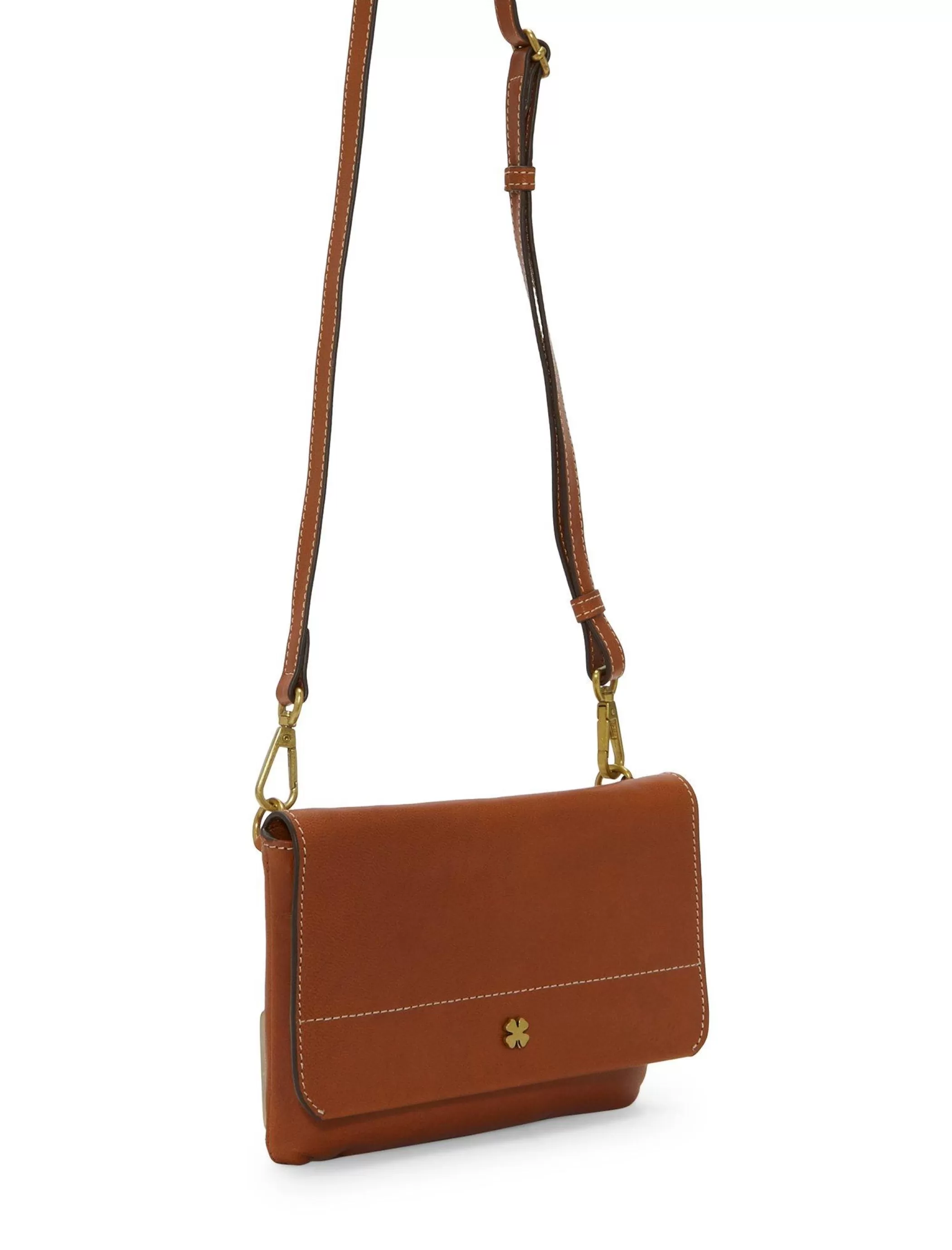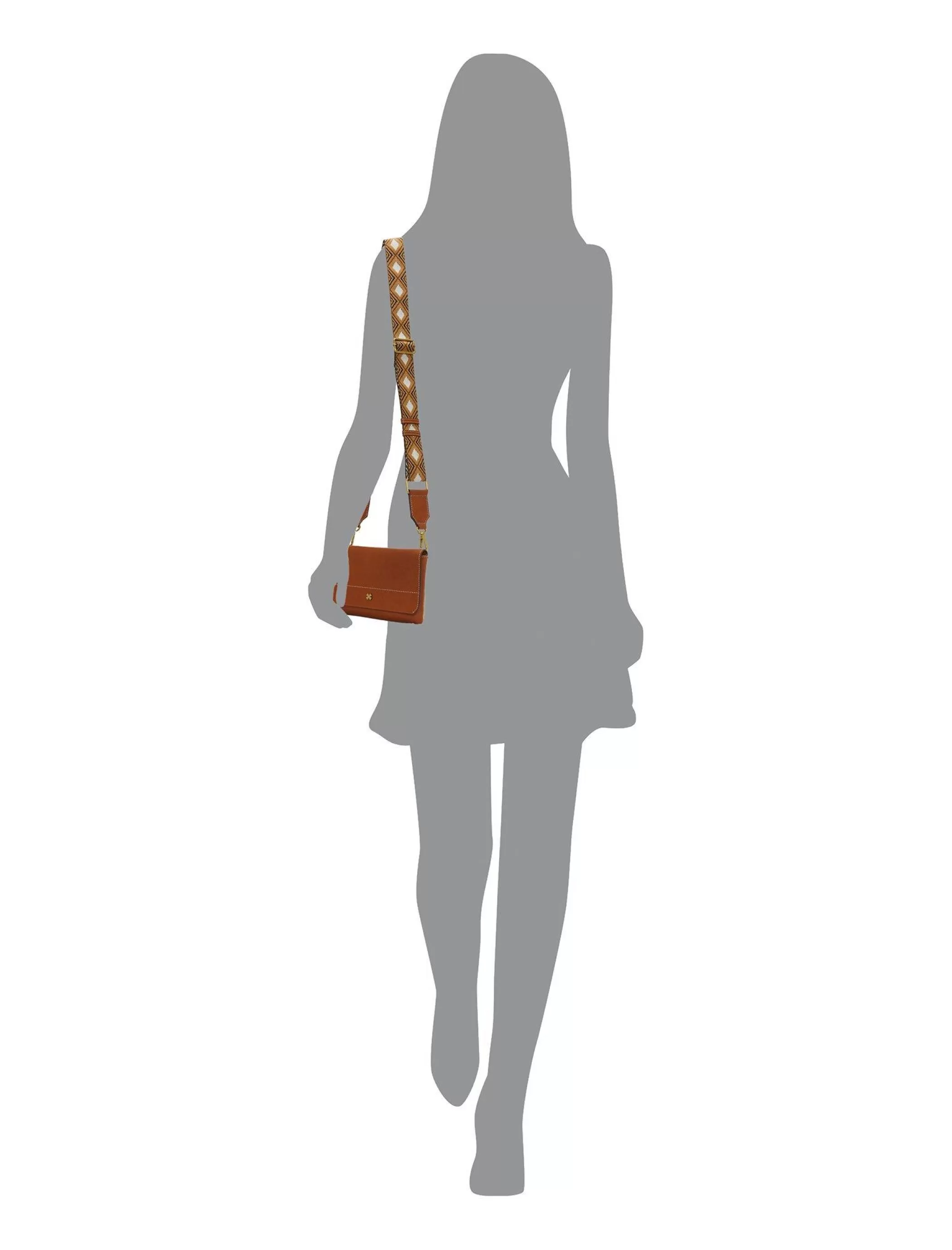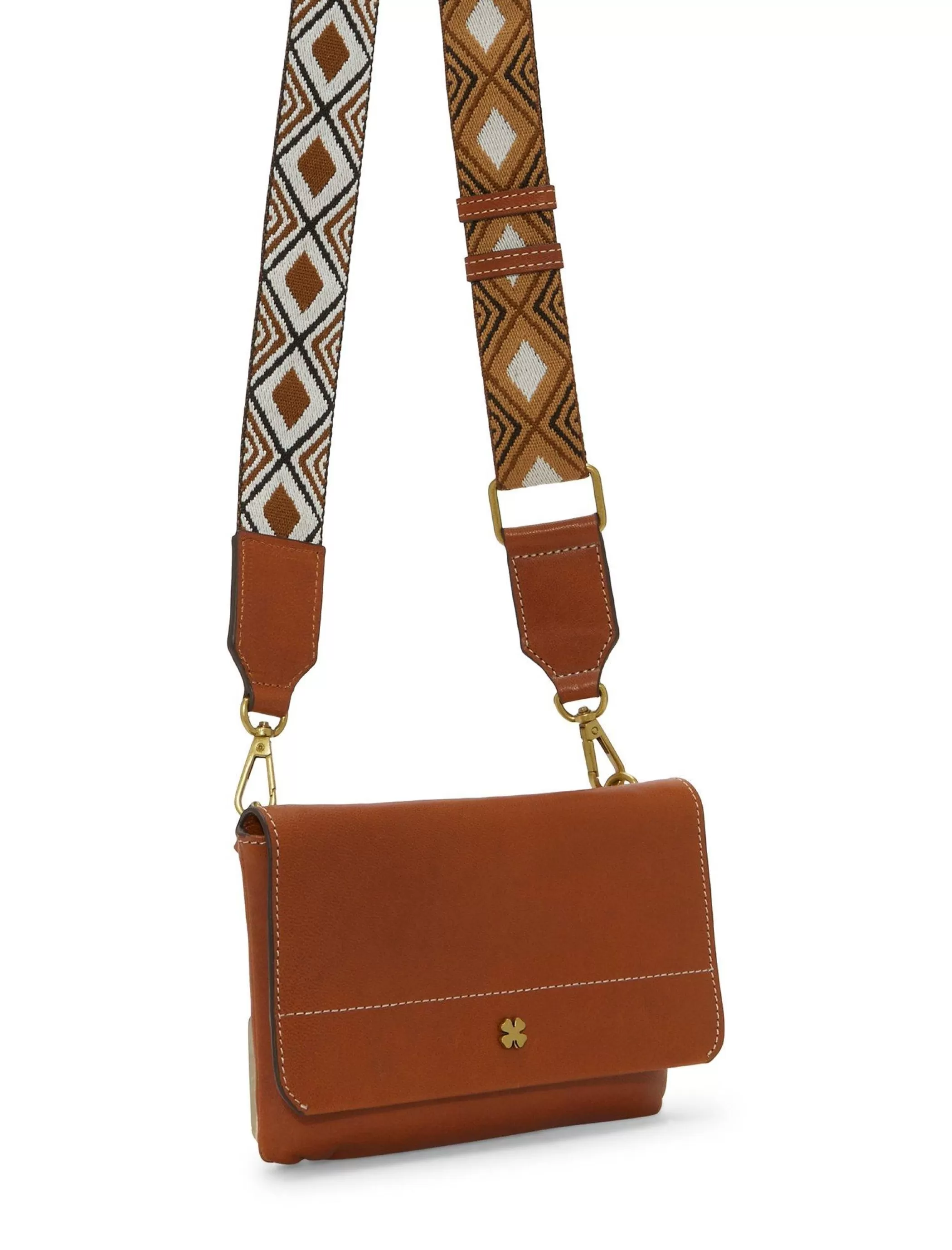 Featured in smooth leather, this crossbody bag shows off a woven shoulder strap with gold-tone hardware that adjusts to your desired length, complete with our clover logo at the center.