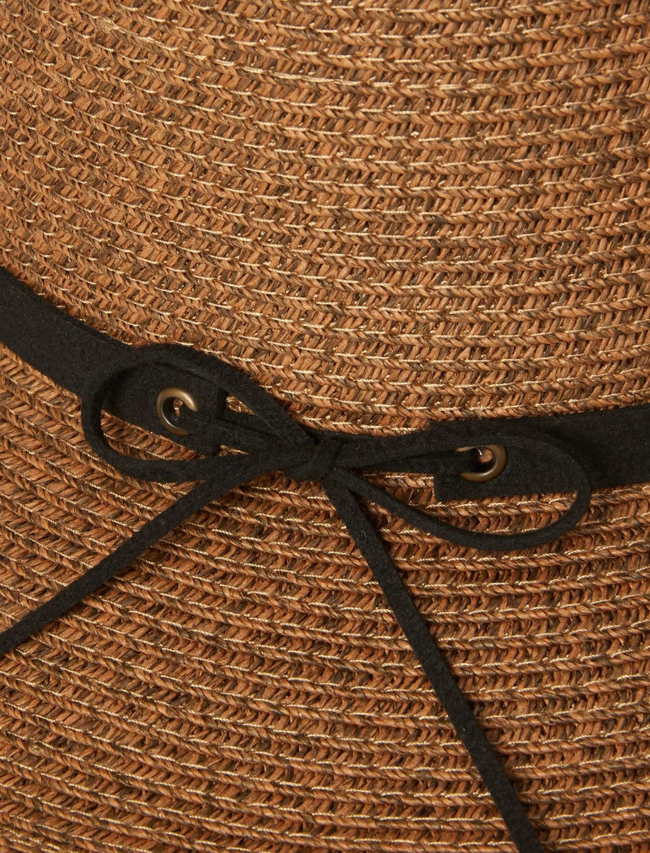 Lucky Brand Hats*leather tie straw hat dark brown