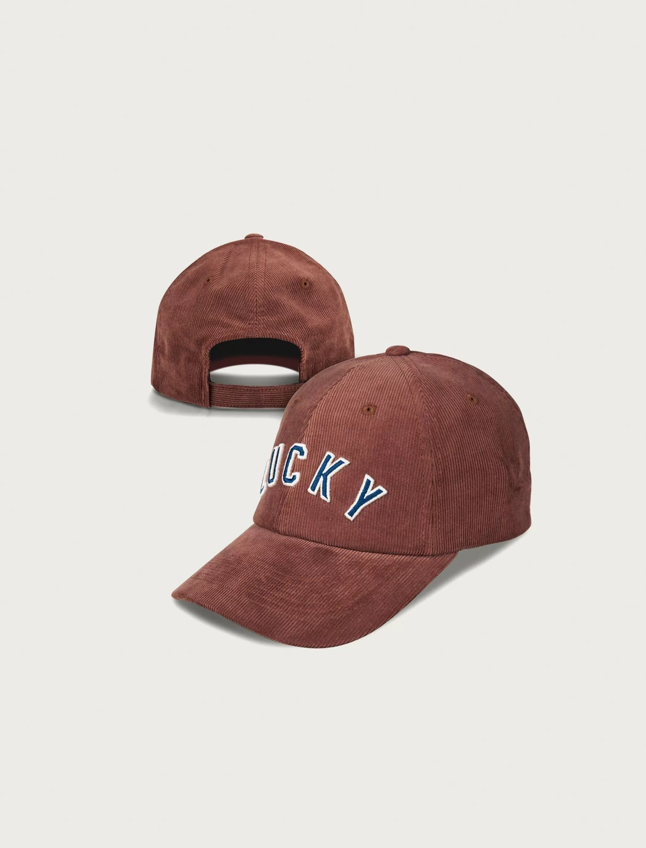 No cap, you need this hat. Cool in corduroy, it shows off our LUCKY logo embroidered at the front and a slide-tab closure at the back.
