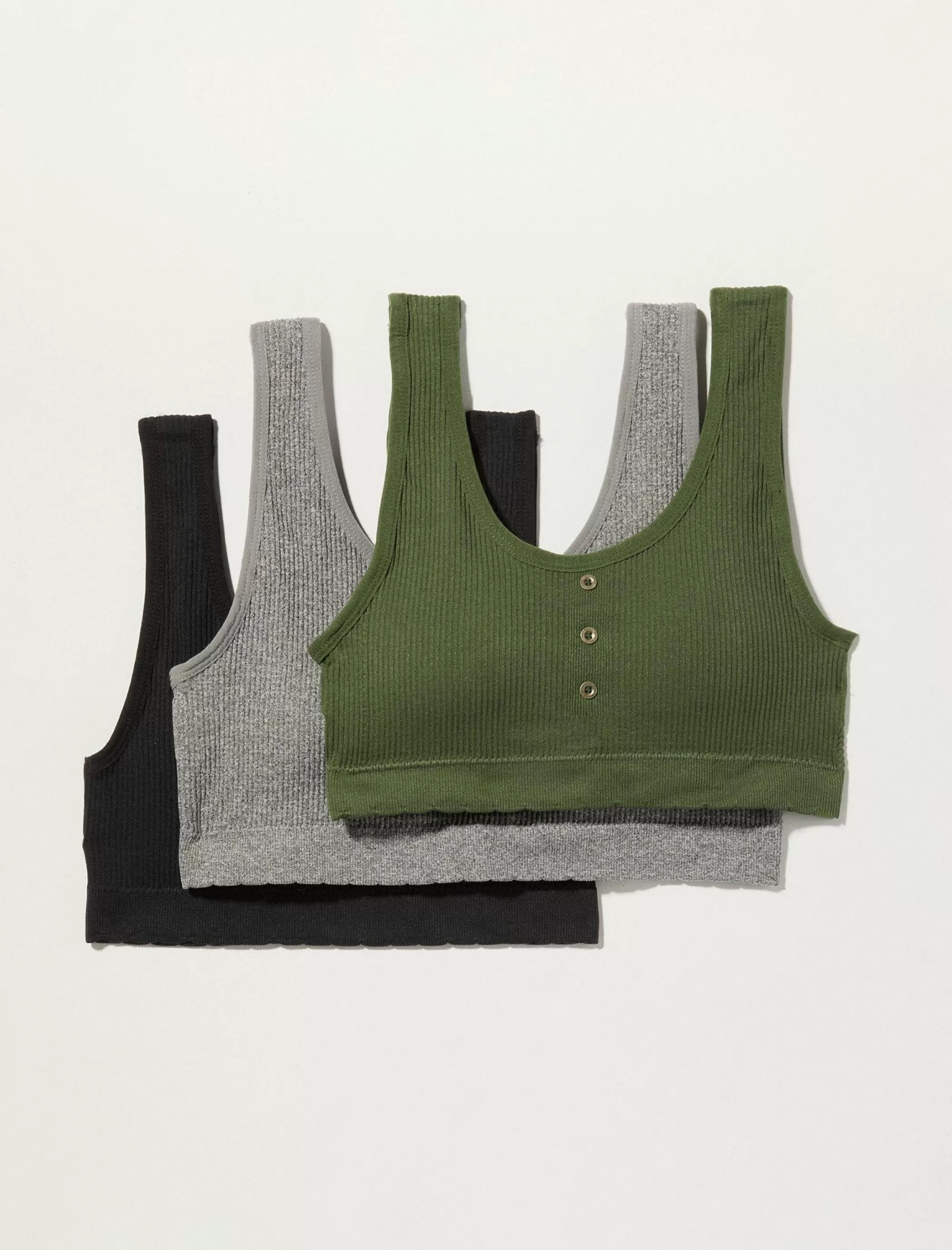 Make your first layer count with these 3-pack ribbed bras made of a feel-good cotton-blend and featuring logo-embossed buttons at the chest for a flirty look.
