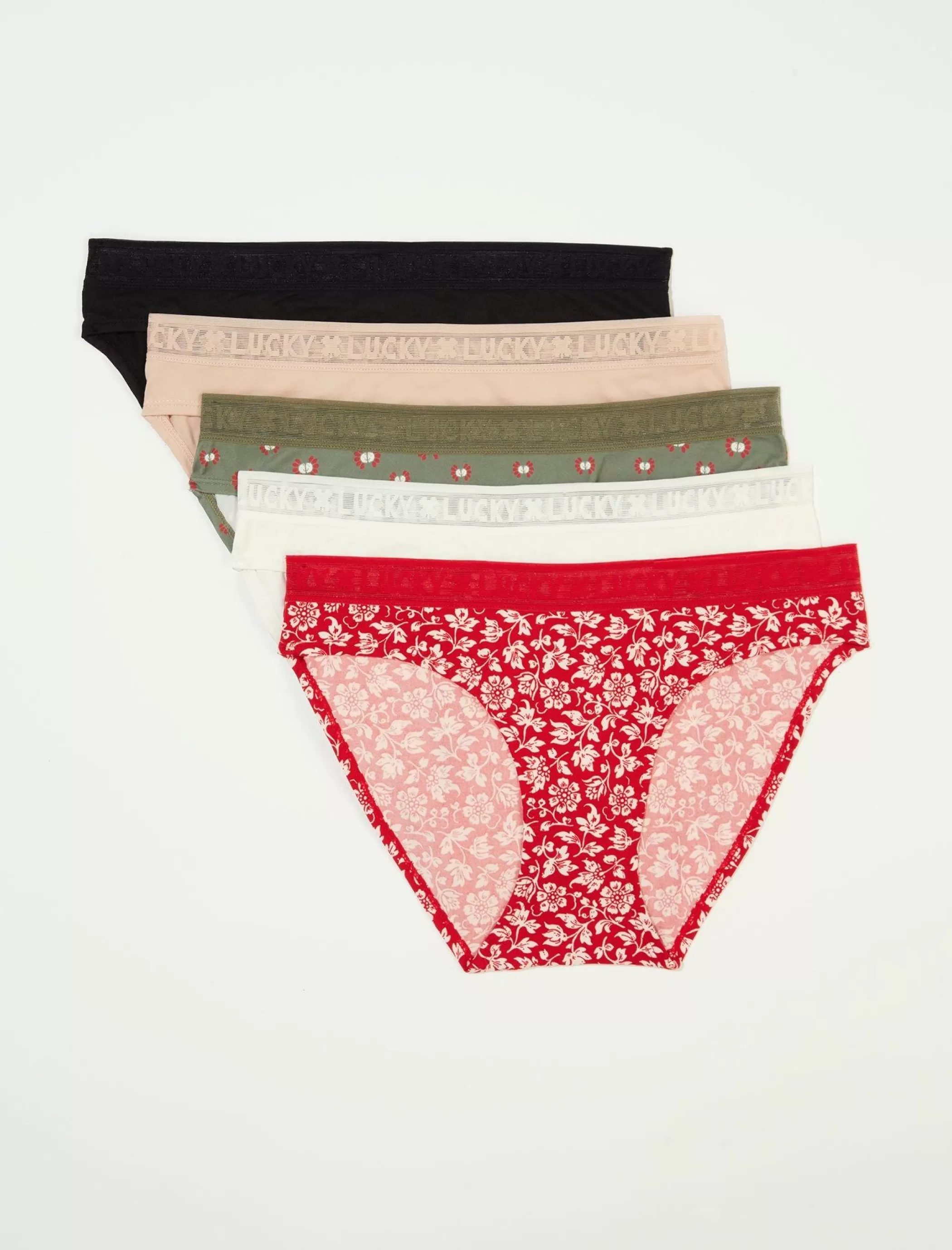 Stock up on the essentials with this 5-pack floral hipster pantie set crafted from breathable cotton-stretch fabric, complete with an all-over feminine flower design and logo lettering along the comfortable elastic band.