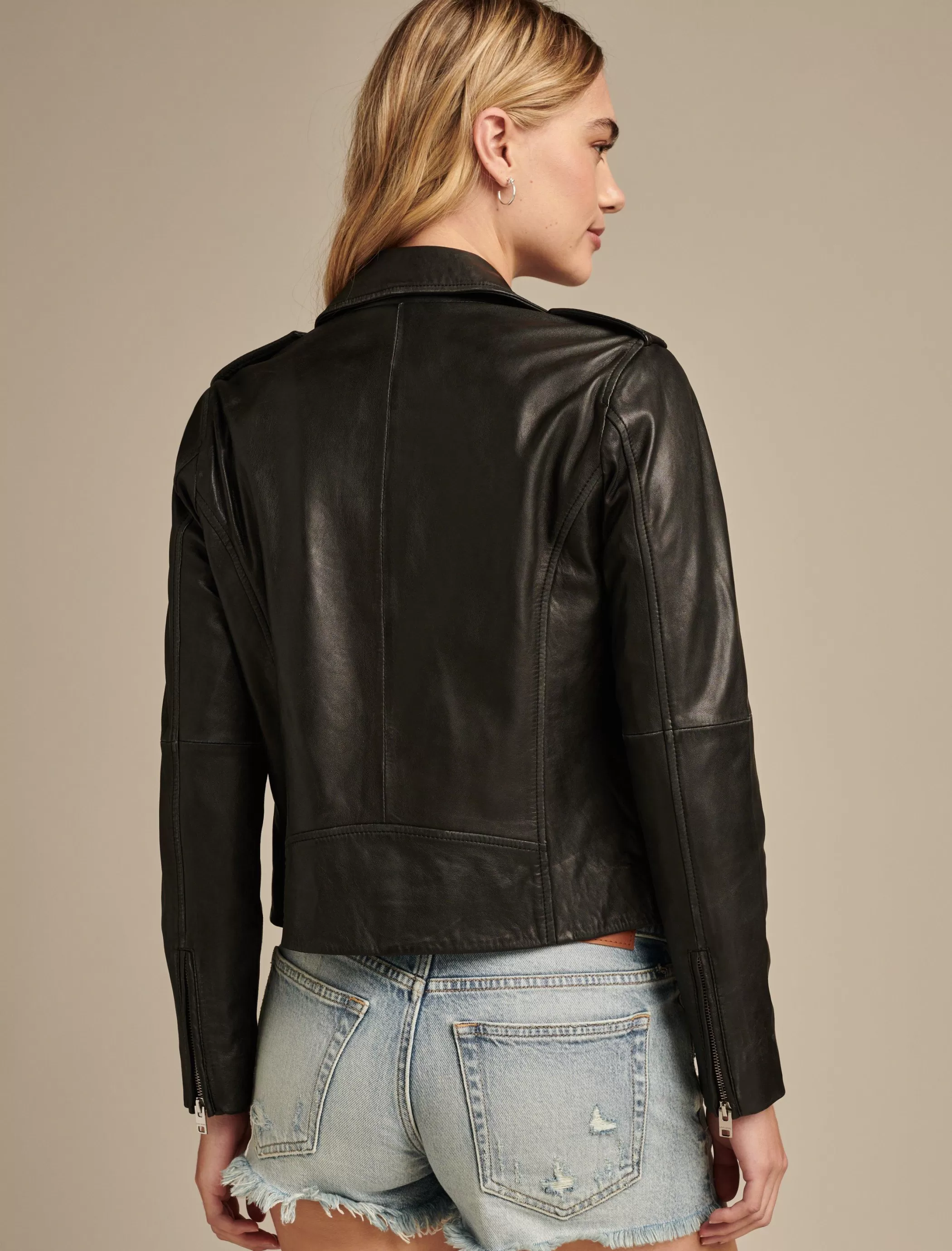 Nothing beats a classic. Made from soft lamb leather, this moto jacket is cut for a slim fit and detailed with all the hallmarks of a traditional biker, including snap-fastening epaulettes, zip pockets and silver-tone hardware.