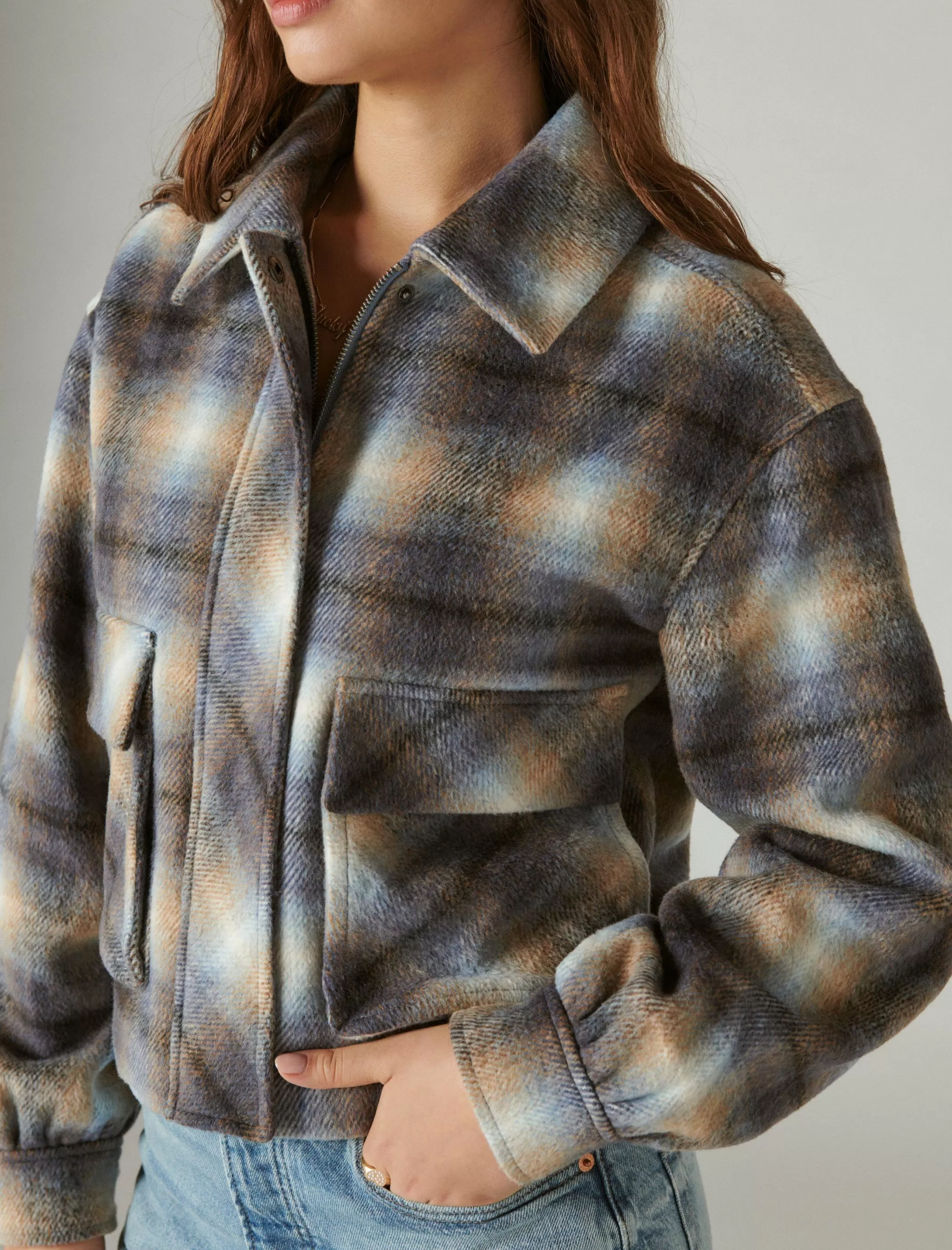 So cute and perfectly cropped, this plaid jacket is the perfect layering piece for complementing all of your cool-weather ‘fits.