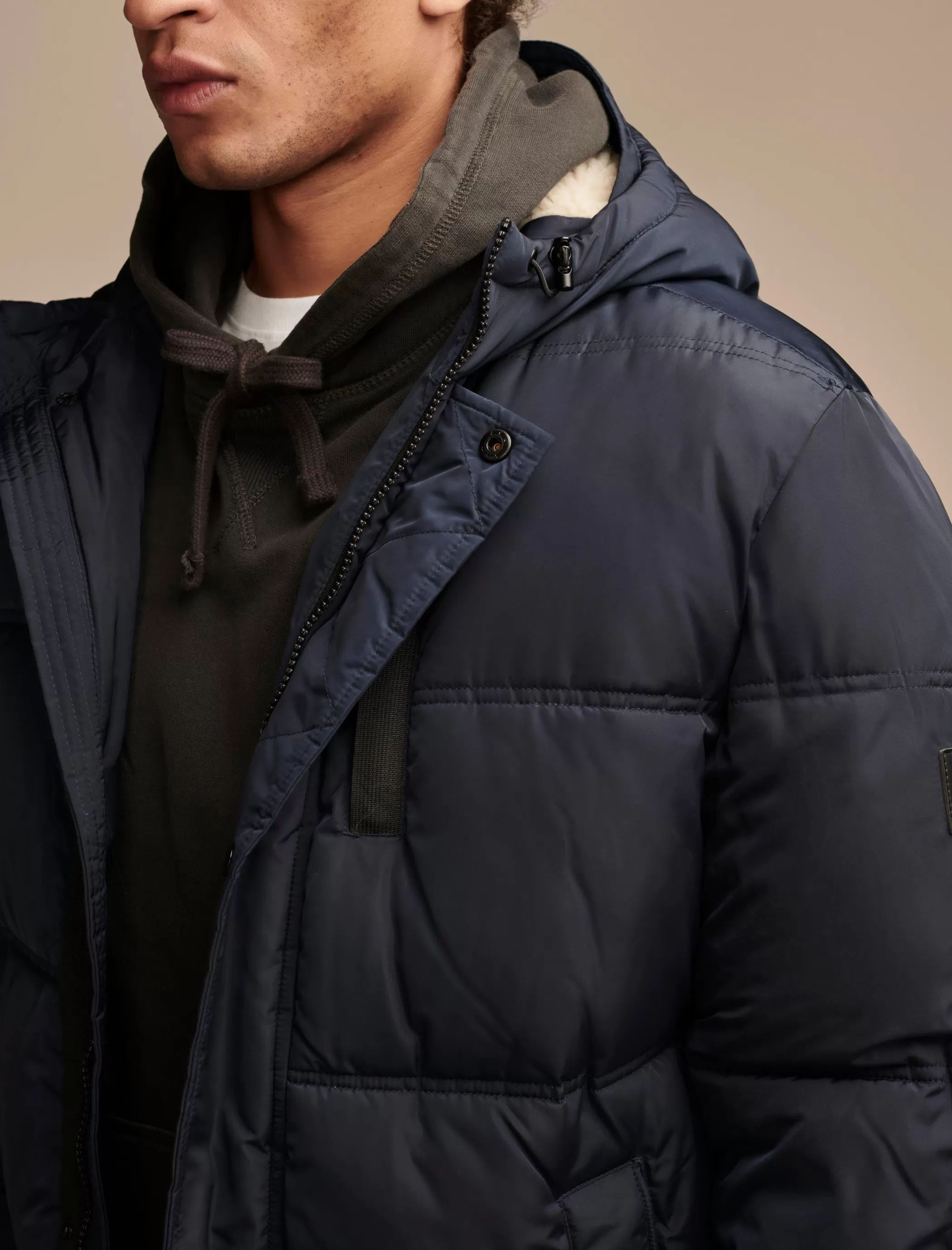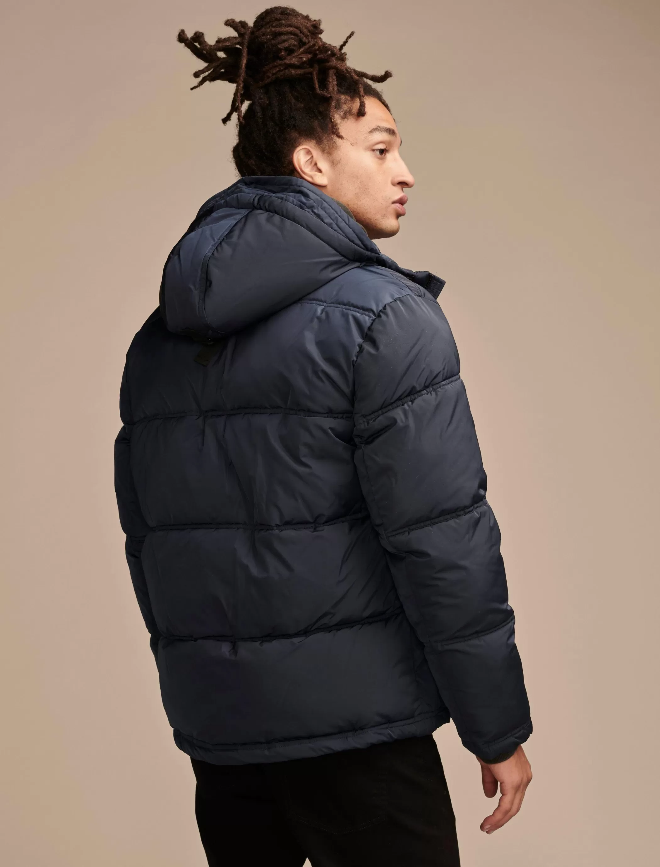 No cool-weather wardrobe is complete without a puffer. Featuring a faux shearling lined hood, this puffer jacket has a button-and-zip front and side pockets for your on-the-go essentials.