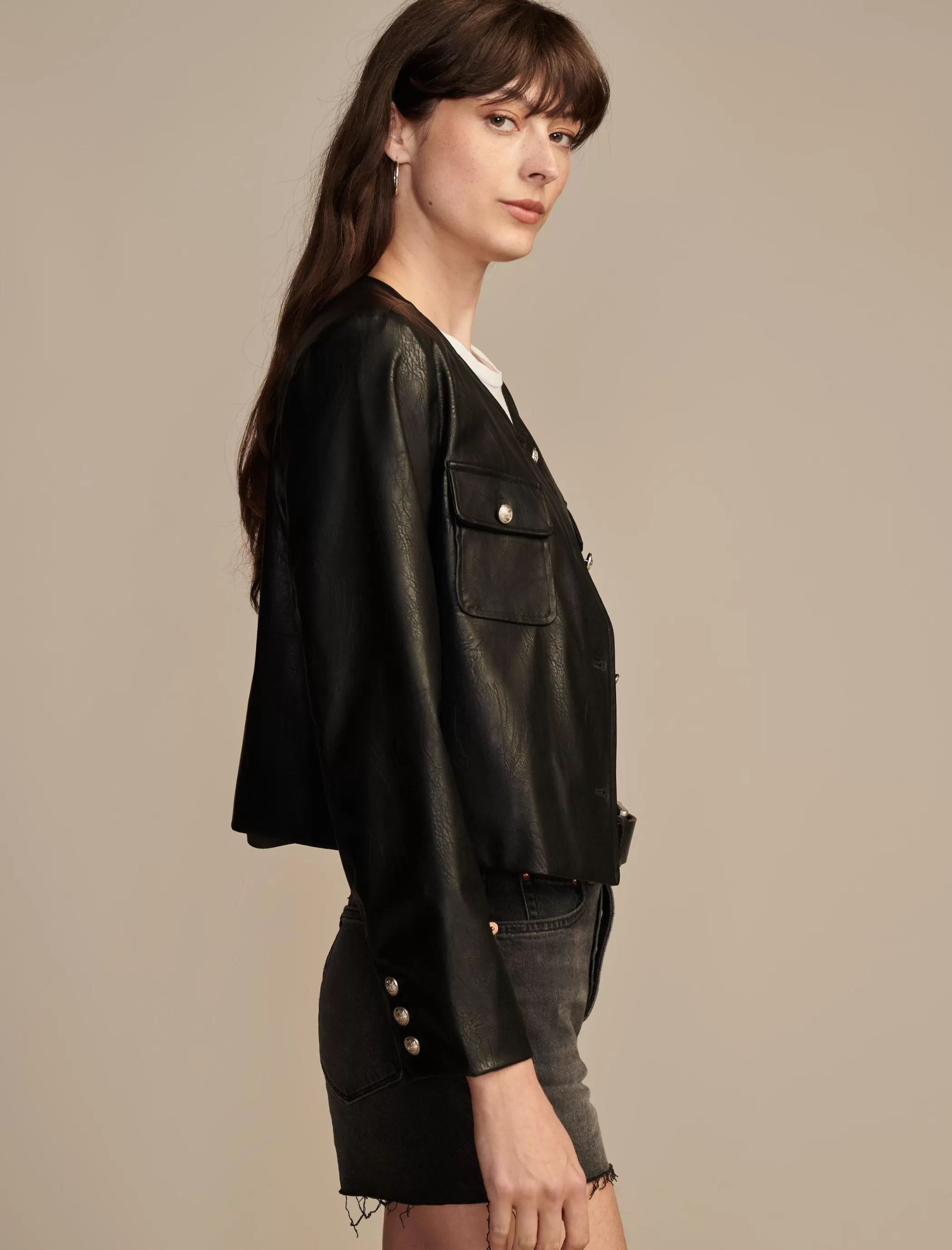 A staple in anyone’s wardrobe, this faux leather jacket is the perfect layering piece to leveling up any ‘fit.Button…