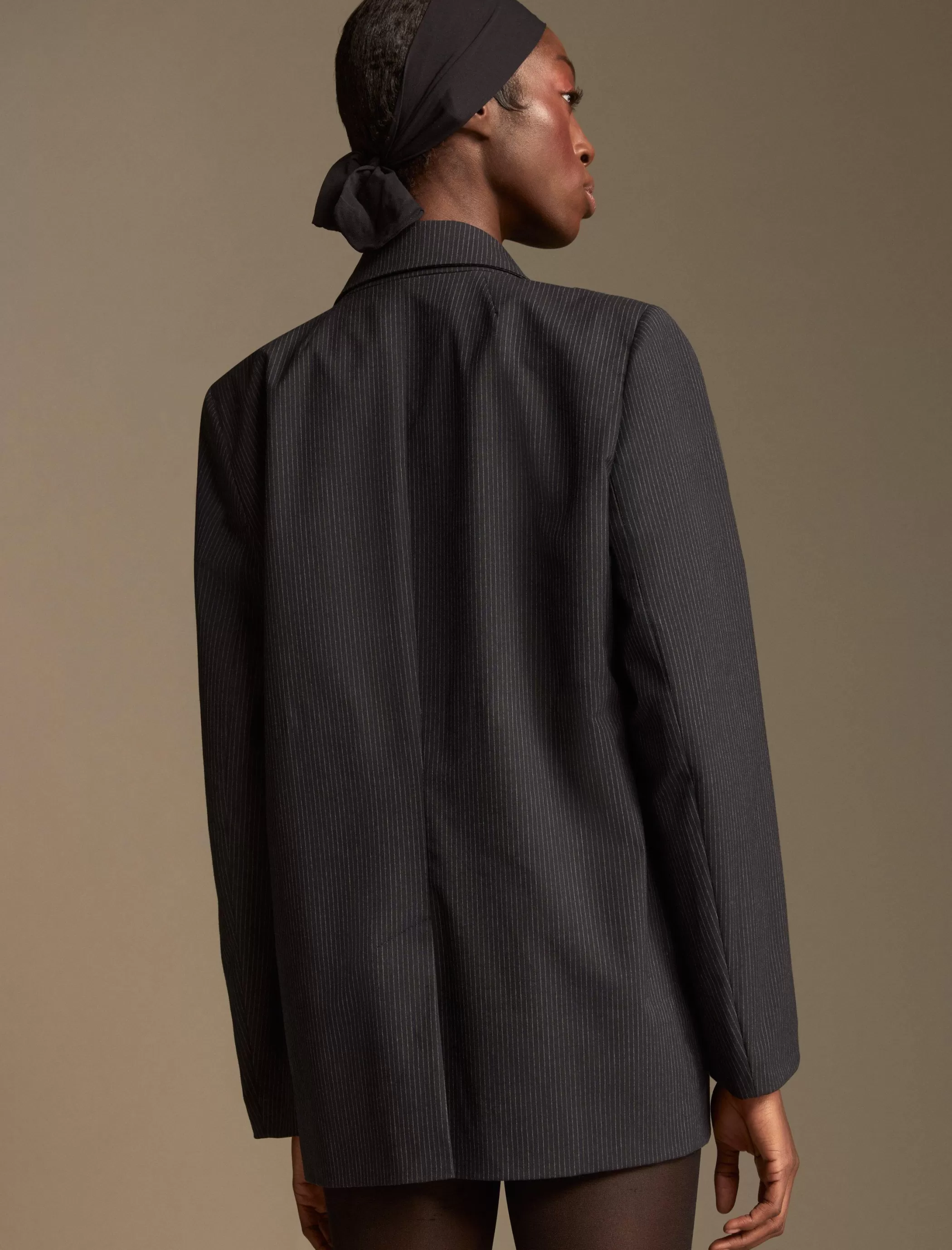 Calling all boss babes—this blazer is for you! Featuring a pinstripe design, this oversized-fit layering staple effortlessly levels up any look with a notch lapels, a single breasted front and multiple pockets.