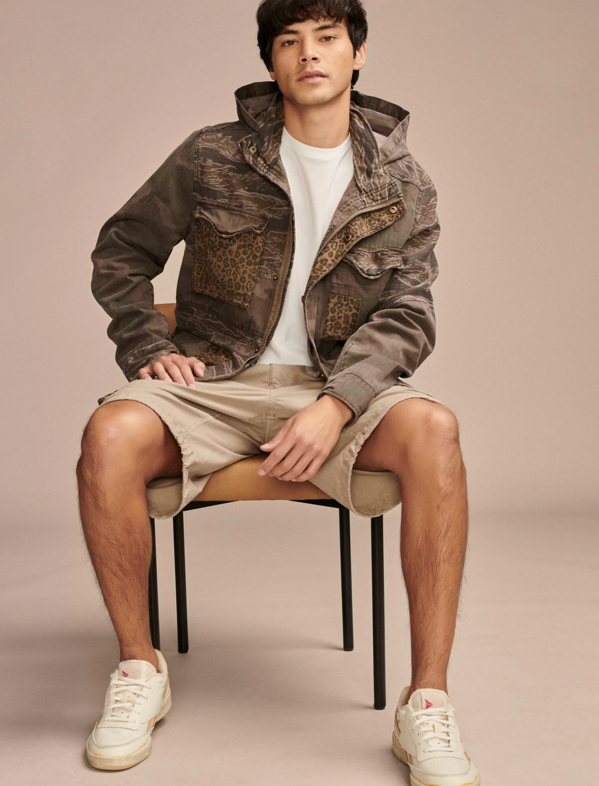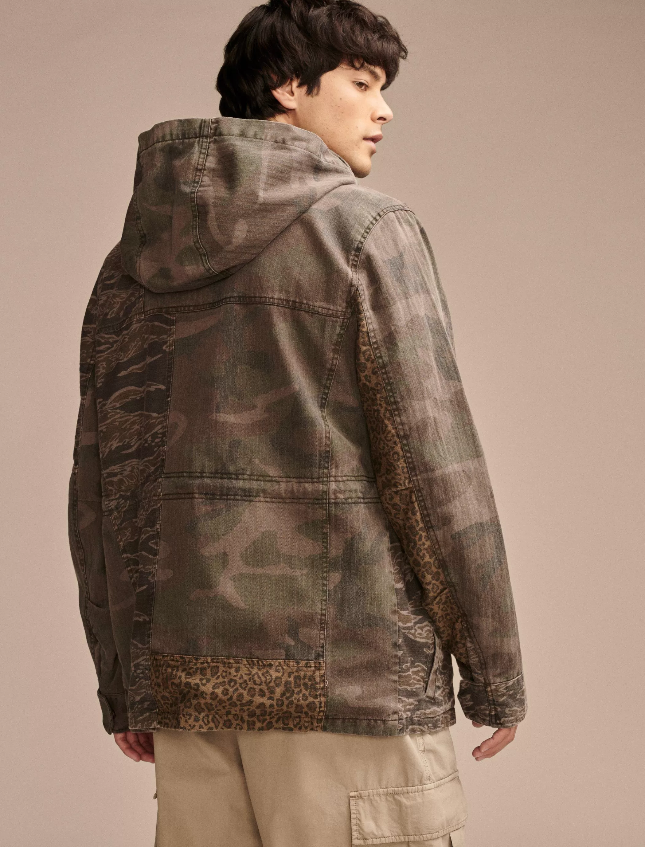 This camouflage field jacket is the perfect layer for any look. Featuring a mixed patchwork design and multiple flap pockets, this jacket is essential to your everyday wardrobe.