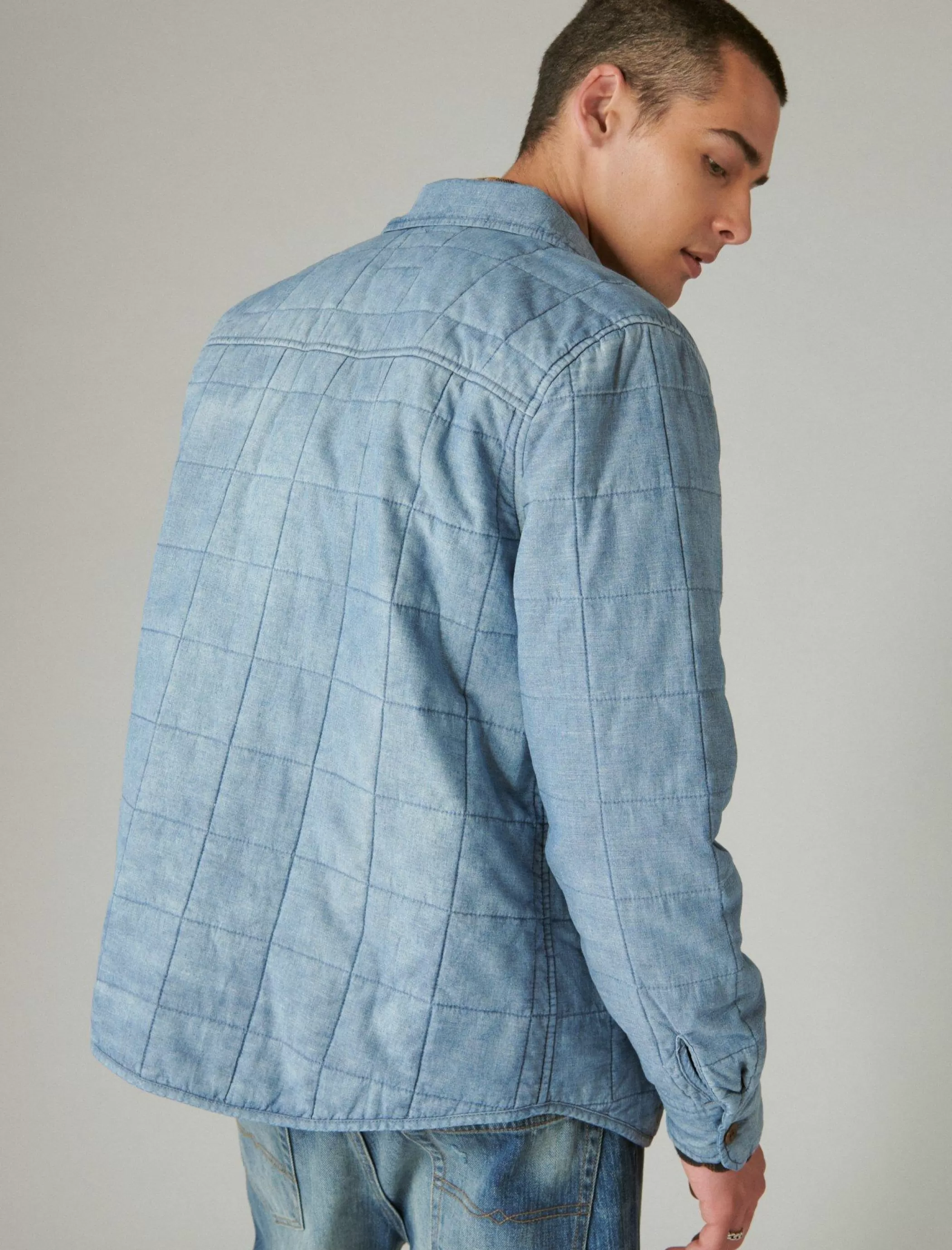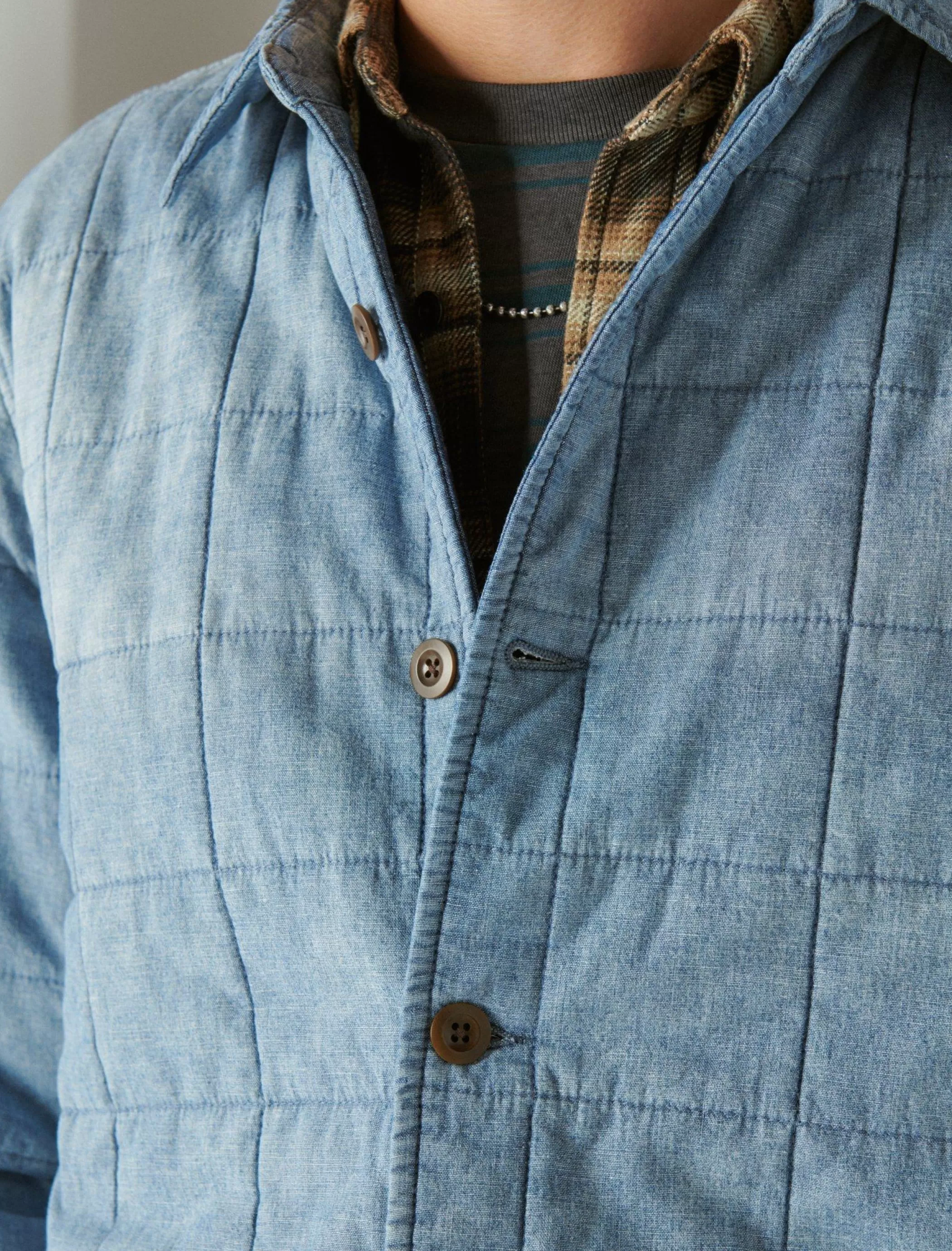 The soft chambray cotton fabric and classic quilted design make this shirt jacket a must-have layering staple for your cool-weather wardrobe and beyond.