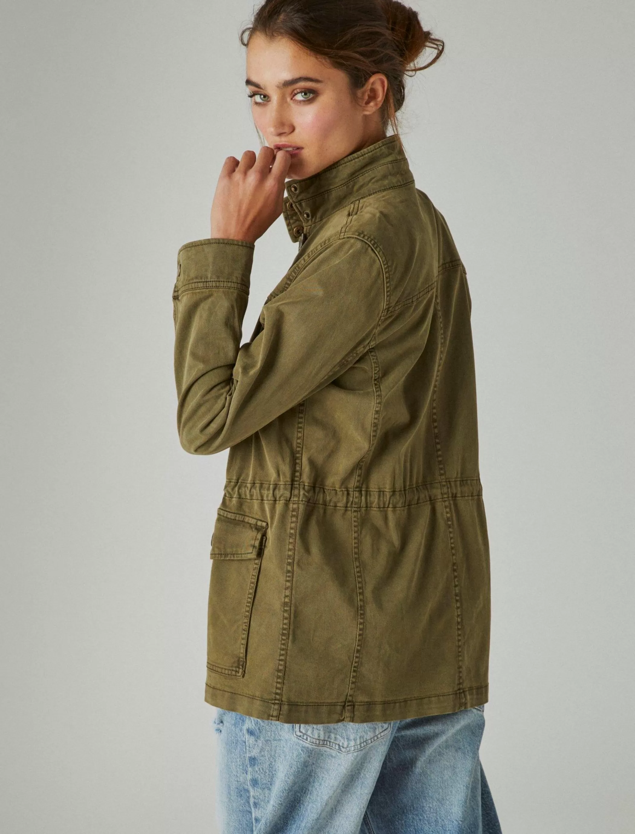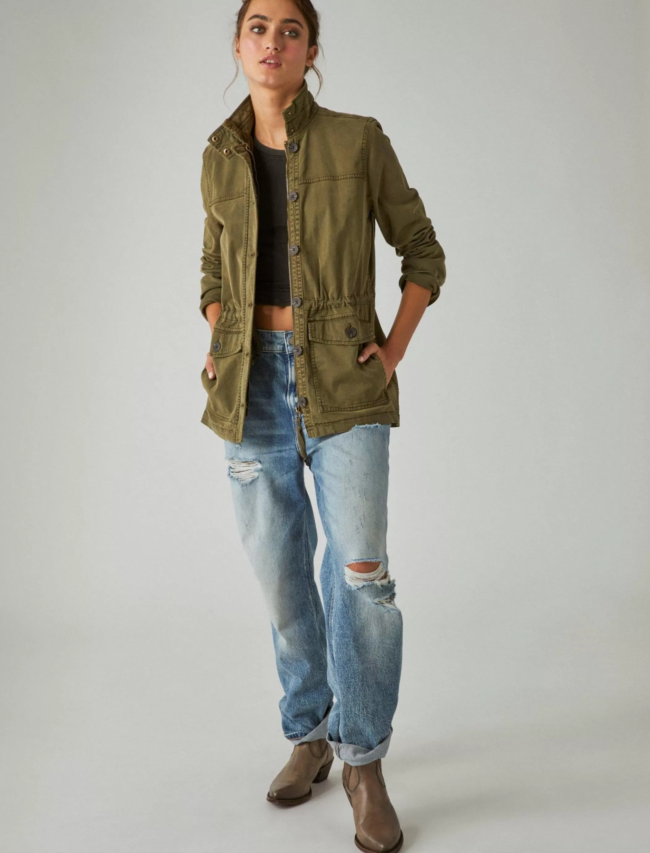 Just as functional as it is stylish, this utility jacket features a cinched waist, buttoned flap pockets and structured …