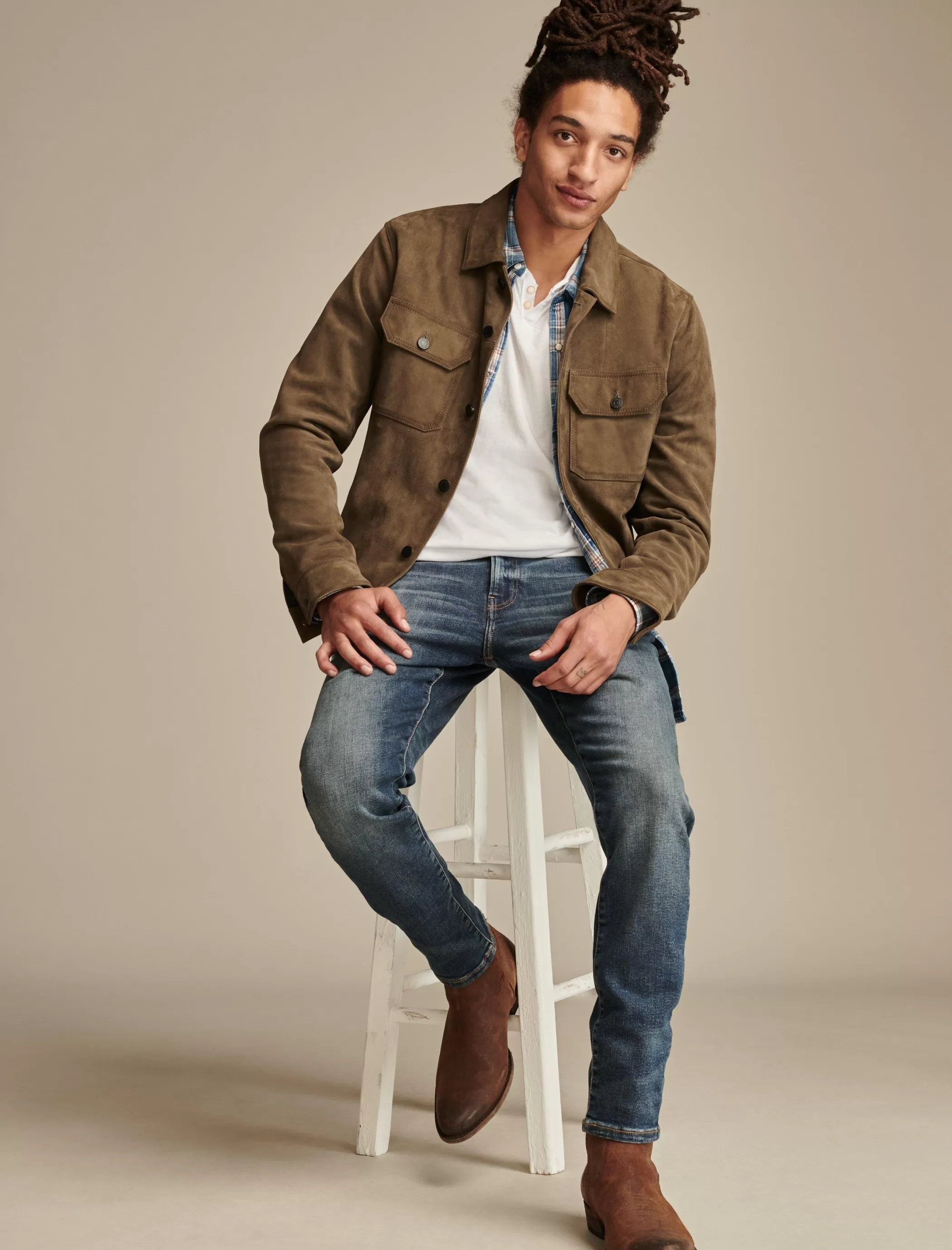- Dark wash denim