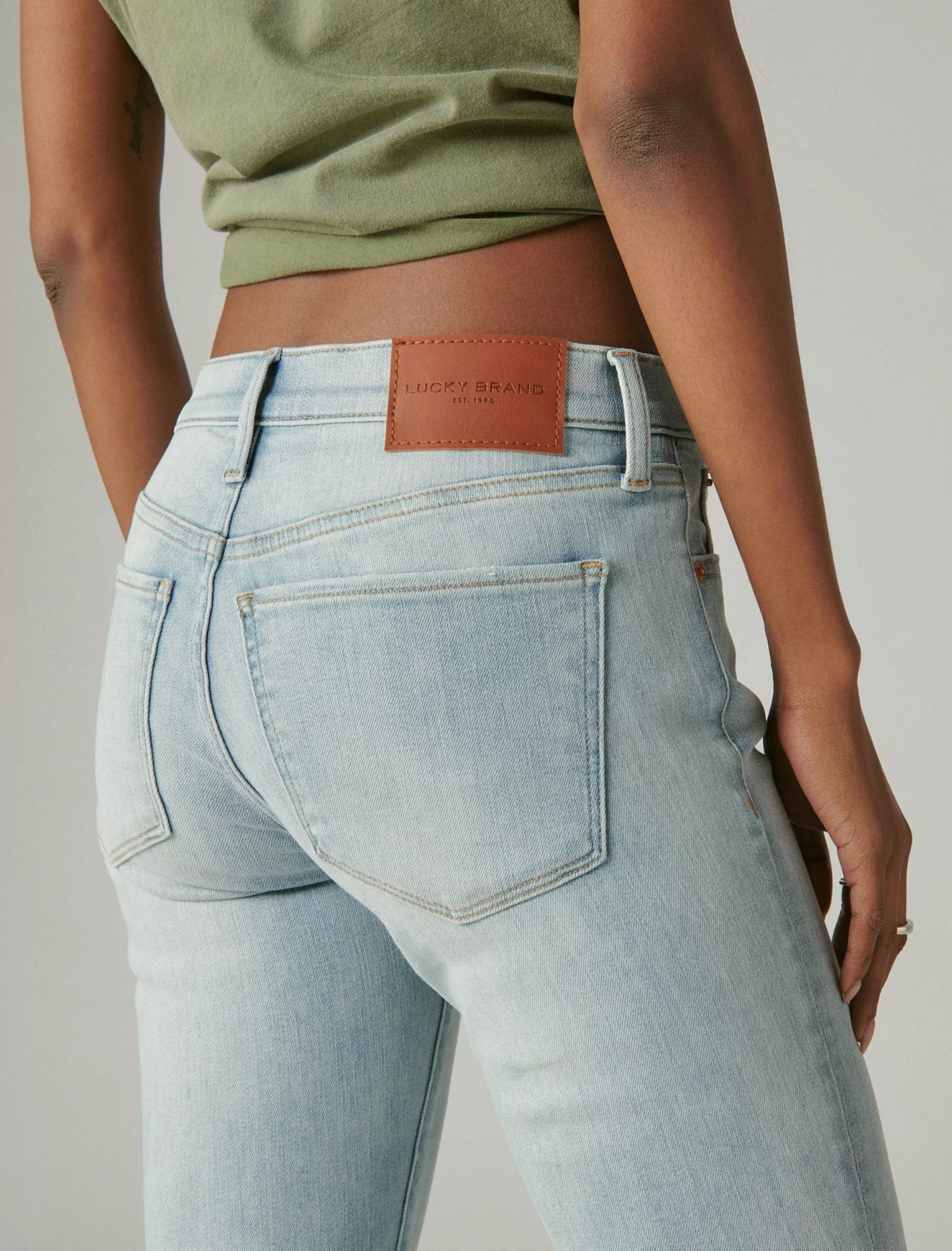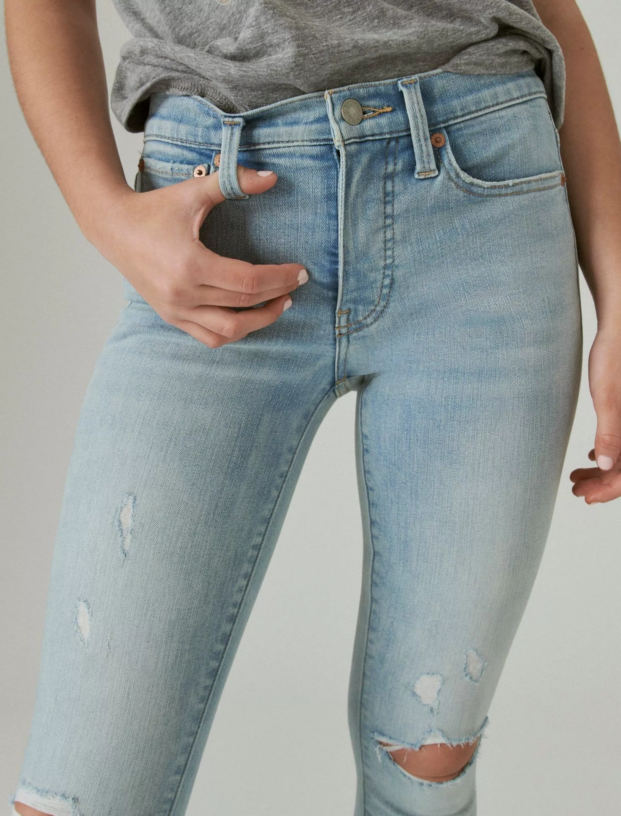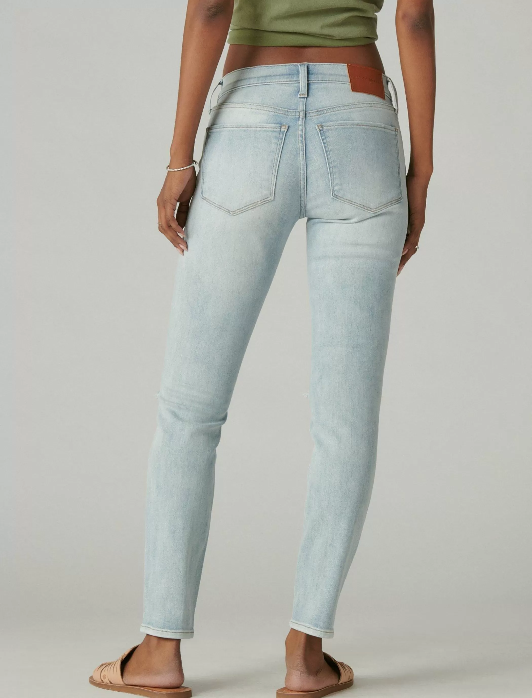 Our classic, bestselling Mid Rise Ava is a universally flattering, everyday skinny fit that cuts close to the body with plenty of stretch for easy movement. Style this distressed light wash denim pair with your favorite Lucky graphic tee or crop top to complete the look.