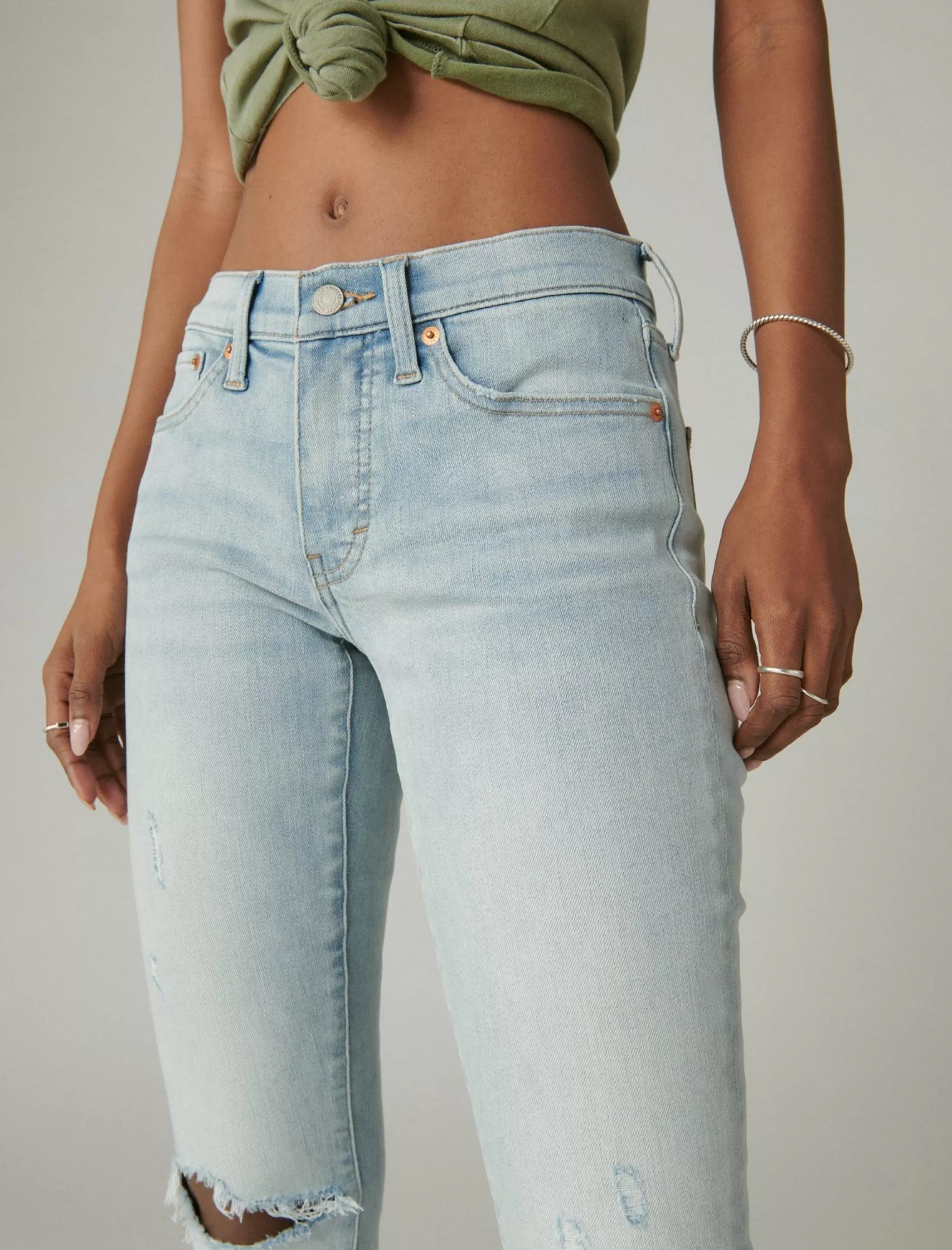 - Mid rise with a skinny fit and skinny leg
